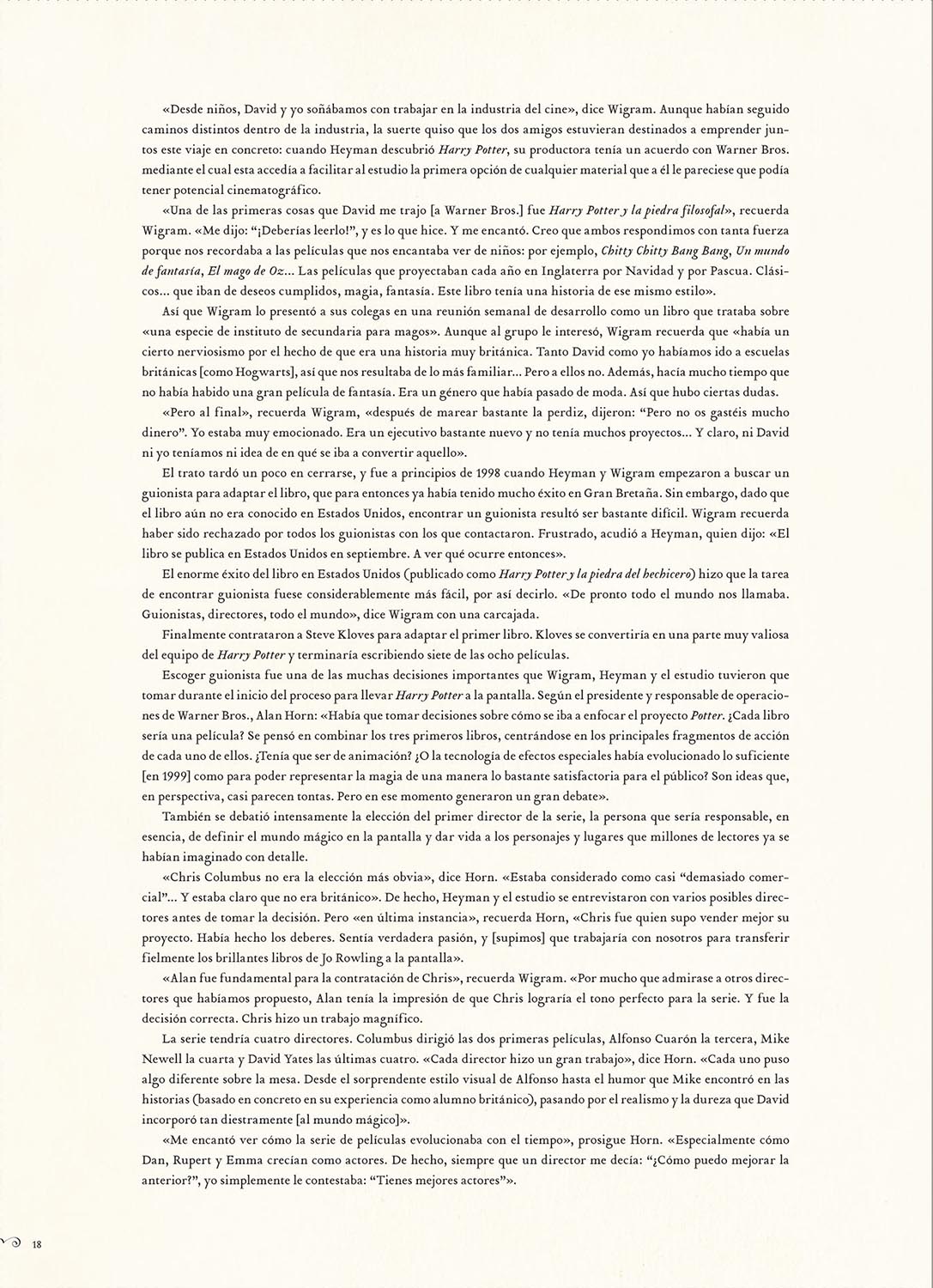 Harry Potter: De la página a la pantalla abre las puertas del castillo de Hogwarts y el mundo mágico para mostrarnos los secretos, técnicas y espectacular arte que dieron vida en el cine a las aclamadas novelas de J.K Rowling. De la página a la pantalla ha sido desarrollado en colaboración con el equipo creativo a cargo de la célebre serie de películas. Este volumen de lujo de más de 500 páginas incluye anécdotas exclusivas de los actores y equipo de producción, centenares de fotografías e ilustraciones de arte conceptual inéditas, y otros elementos jamás vistos por el público. De la página a la