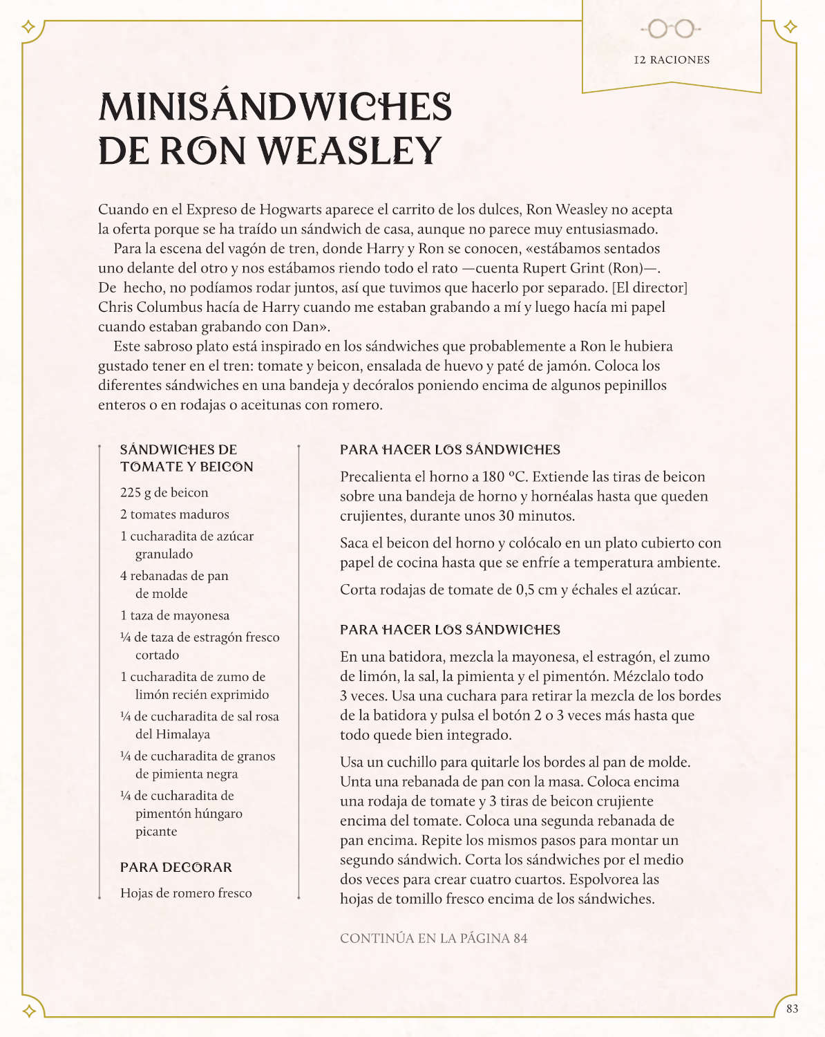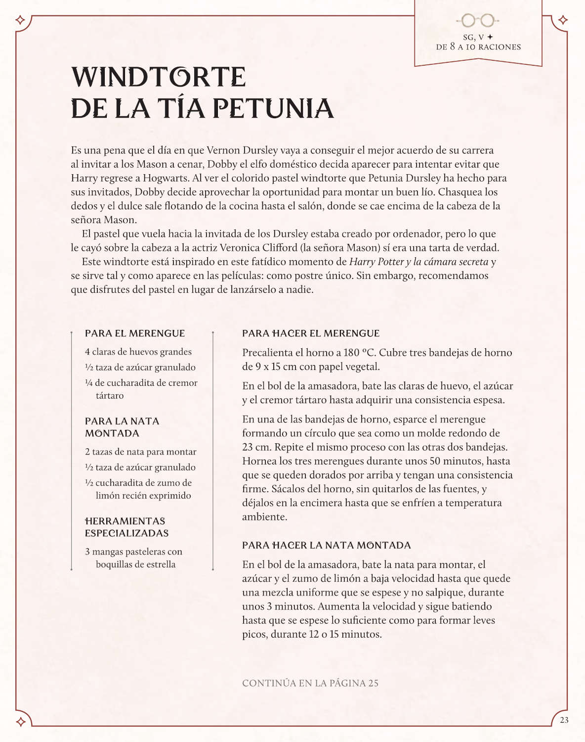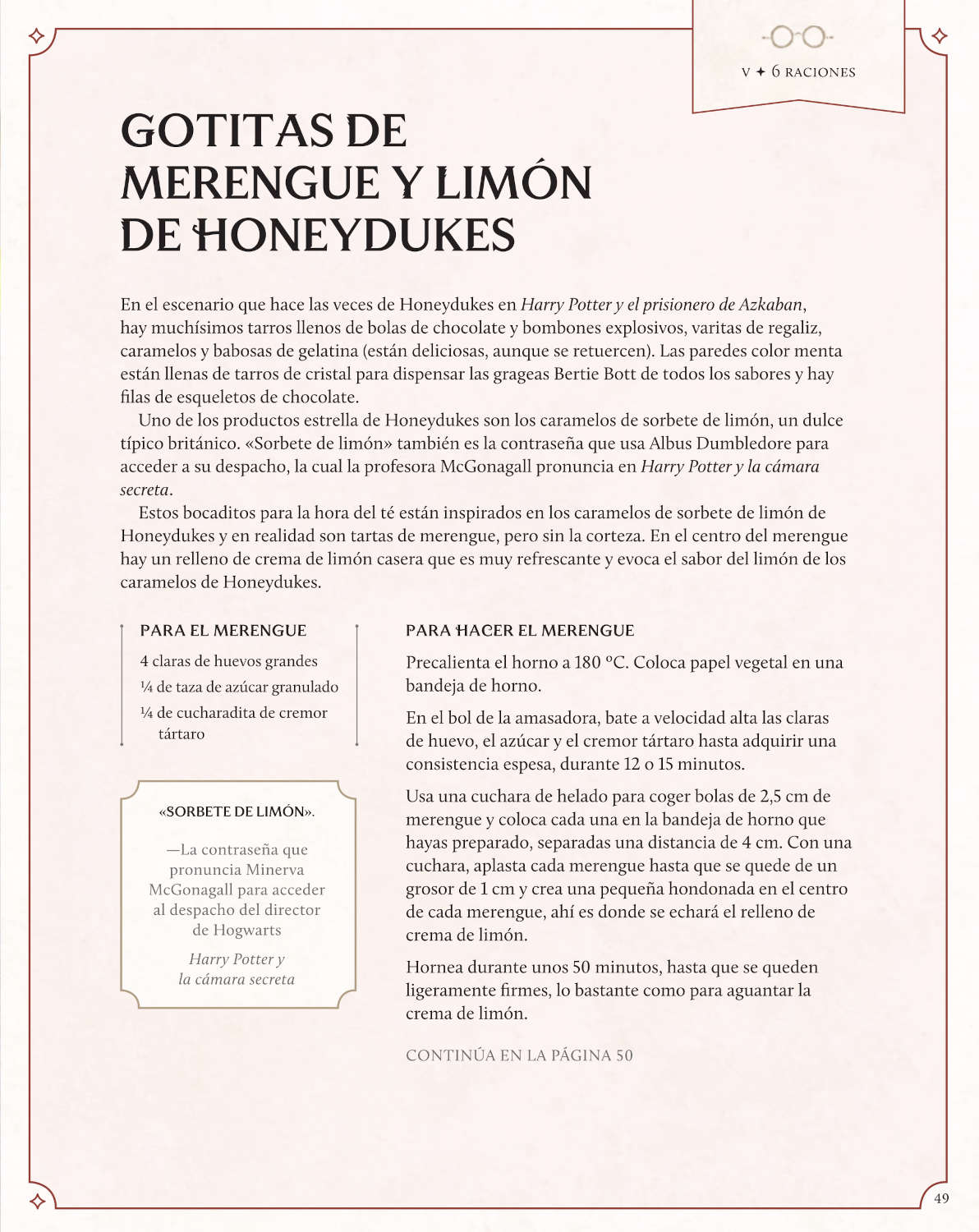 Date un capricho y disfruta del té con recetas basadas en el Mundo Mágico que te ayudarán a aprender a gozar de esta tradición inglesa. Prepara las meriendas favoritas de magos y muggles como Harry Potter, Hermione Granger, Newt Scamander, Queenie Goldstein, Jacob Kowalski y muchos otros. Ilustrado con hermosas fotografías de comida, bebida y dulces, este libro de recetas ofrece instrucciones paso a paso para preparar una hora del té tradicional y realmente mágica.