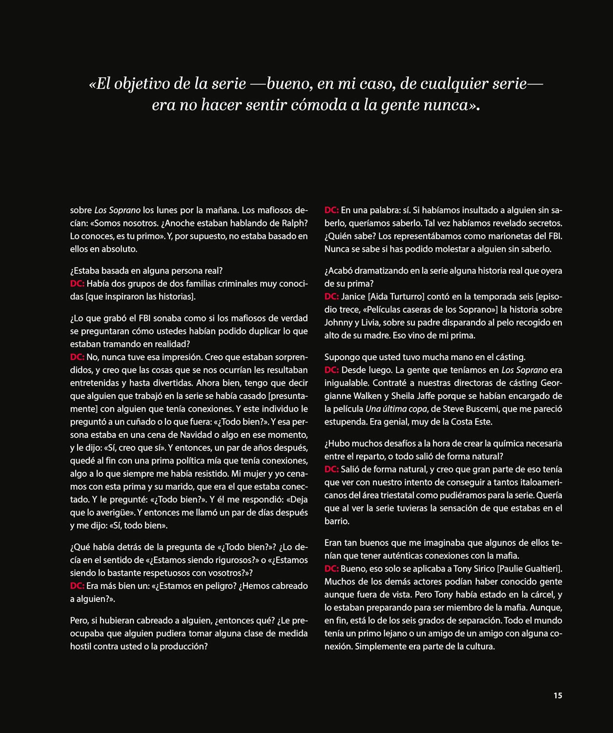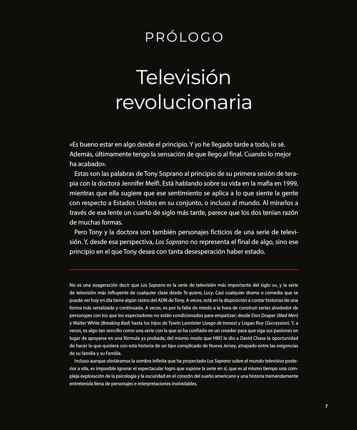 Ahora, en honor al 25.º aniversario de la serie, Los Soprano: La historia visual completa explora esta influyente serie y la historia de su creación a través de un profundo viaje fotográfico a todo color que incluye el análisis de Tony como antihéroe, perfiles de los personajes significativos, análisis temporada a temporada y entrevistas exclusivas con el creador de la serie, David Chase, el reparto y el equipo técnico.