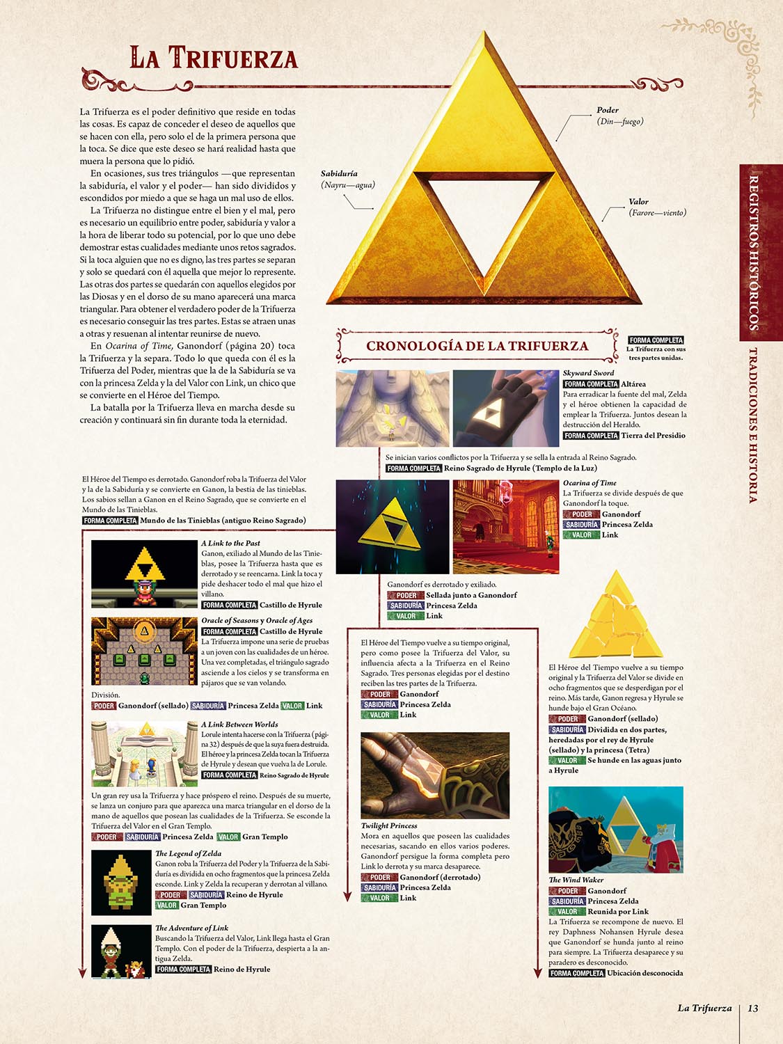 Llega a nuestras estanterías la última entrega de la magnifica colección que Nintendo creó para conmemorar el 25º aniversario de The Legend of Zelda. En esta ocasión, Nintendo nos ofrece un magistral recopilatorio de los datos e información más relevantes generados durante la larga vida de la saga, y nos permite con ello alcanzar un conocimiento absoluto sobre el mundo de The Legend of Zelda. En conjunto con The Legend of Zelda: Hyrule historia y The Legend of Zelda: Arte y artefactos lograremos completar la tan ansiada trifuerza.