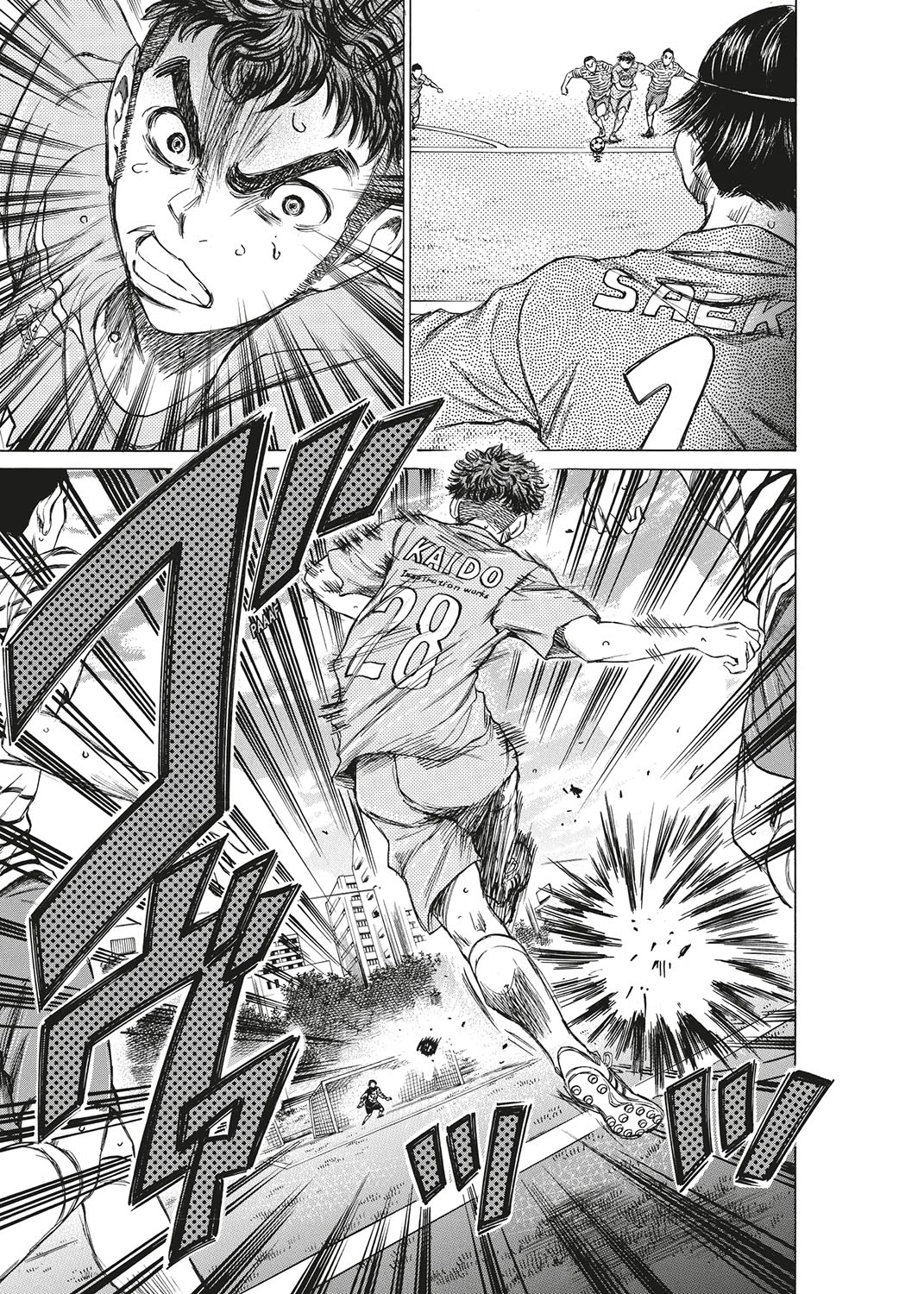 En el Tokyo Musashino F.C. es donde actualmente militan Kaneda y Nakano, excompañeros de Ashito y los demás durante las pruebas de acceso al Esperion Juvenil. En el Esperion han optado por una táctica de pases largos para contrarrestar la presión alta del Musashino. ¡¿Podrán abrir una grieta en su impenetrable defensa?