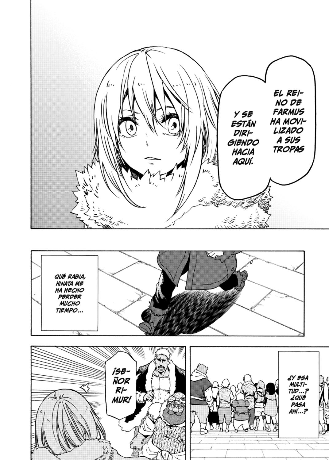 Mientras Rimur estuvo ausente, Tempest fue cubierta con dos barreras: una anulaba la magia e incomunicaba a la ciudad con el exterior; y la otra debilitaba a los monstruos. Por culpa de esta situación, Rimur se retrasó, y para cuando llegó a Tempest, ya había muerto muchísima gente. ¿Qué hará Rimur cuando vea la tragedia con sus propios ojos...?