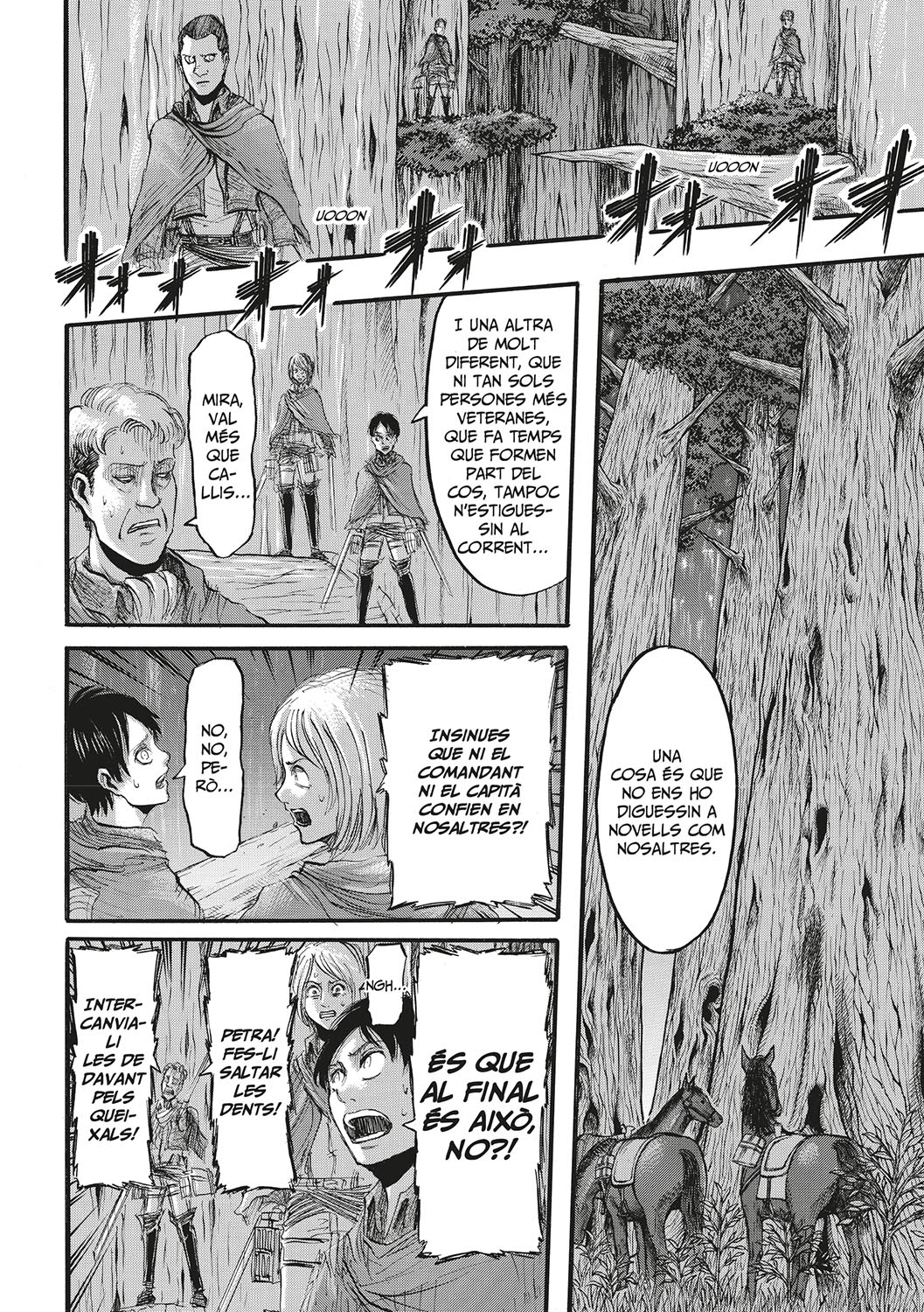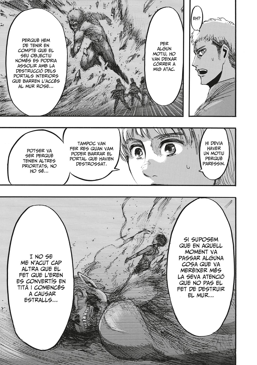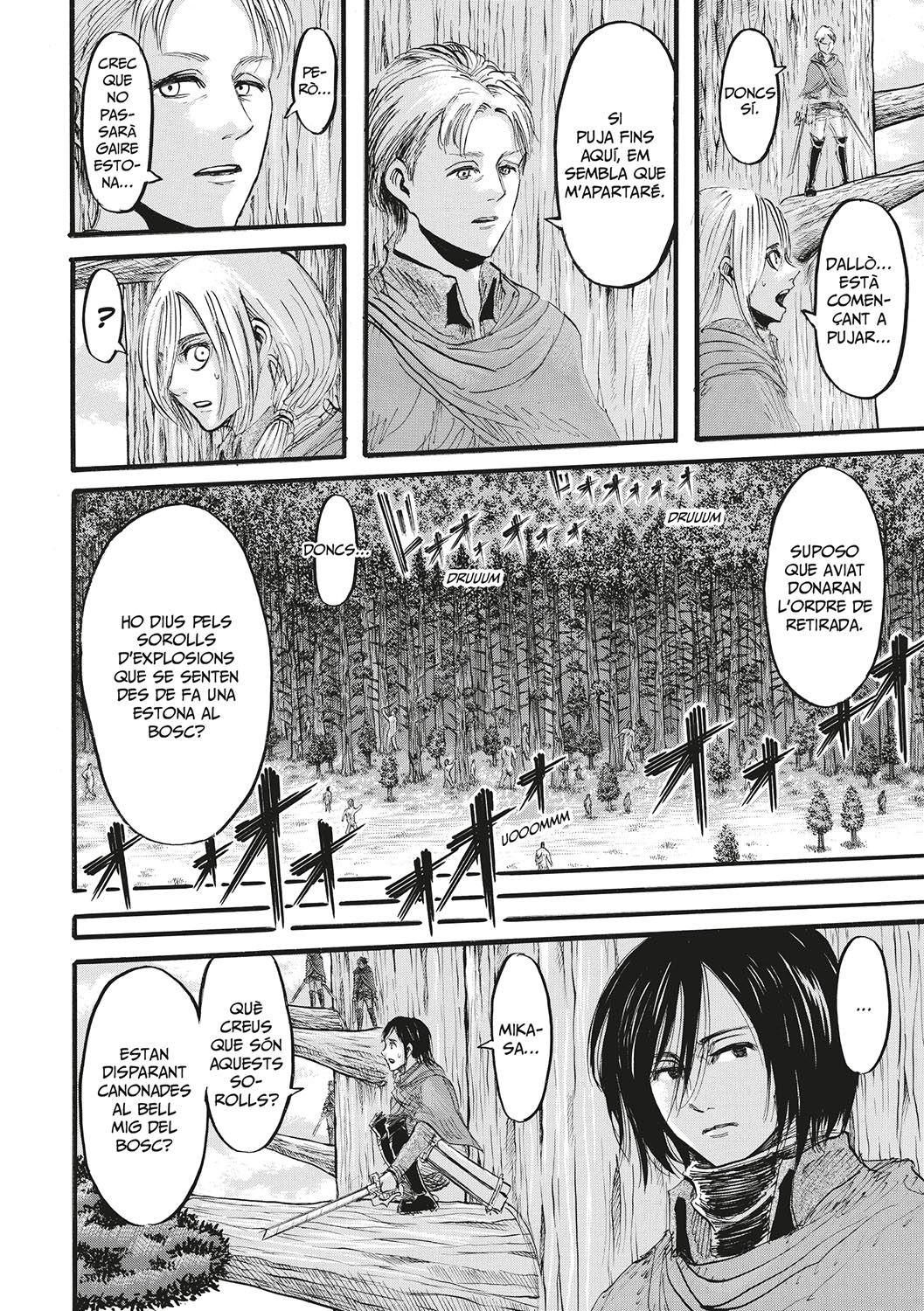 L’habilitat de l’Eren per convertir-se en tità omple d’esperança als soldats i els dona un nou impuls per seguir endavant i combatre’ls. Però aquest raig d’esperança se solapa amb un nou descobriment: un tità femella intel·ligent. Si la intel·ligència era la l’arma principal amb la que els soldats podien combatre els titans com podran ferlos front ara que han descobert que hi ha un tità que també la té? i qui s’amaga darrere d’aquest tità femella?
