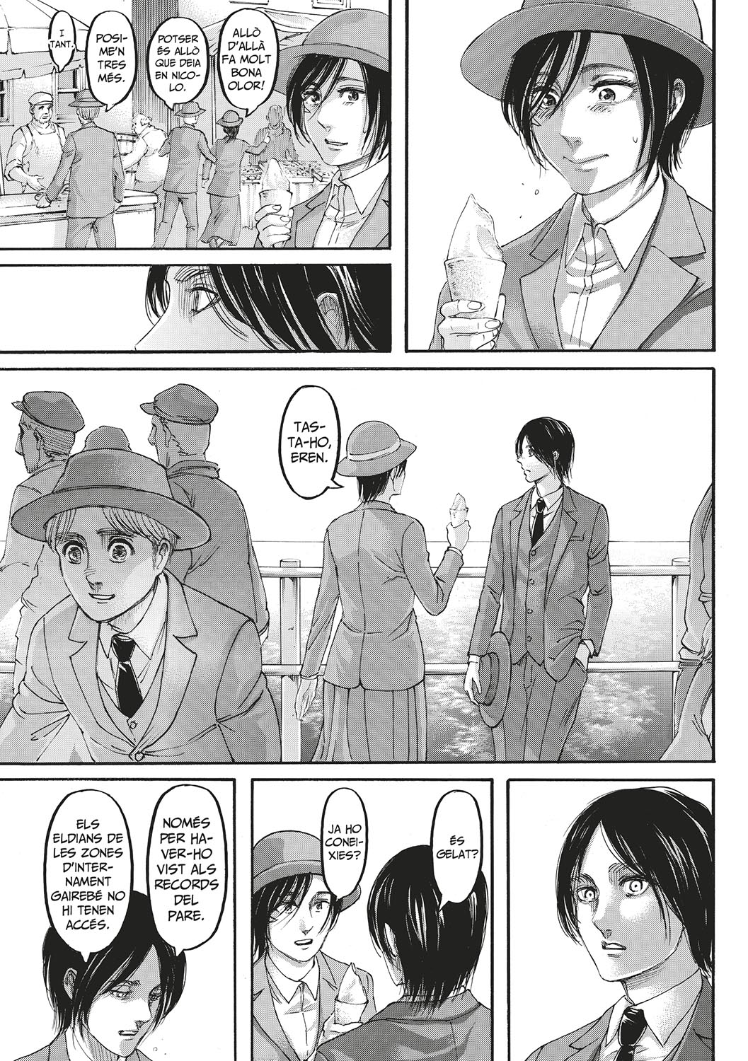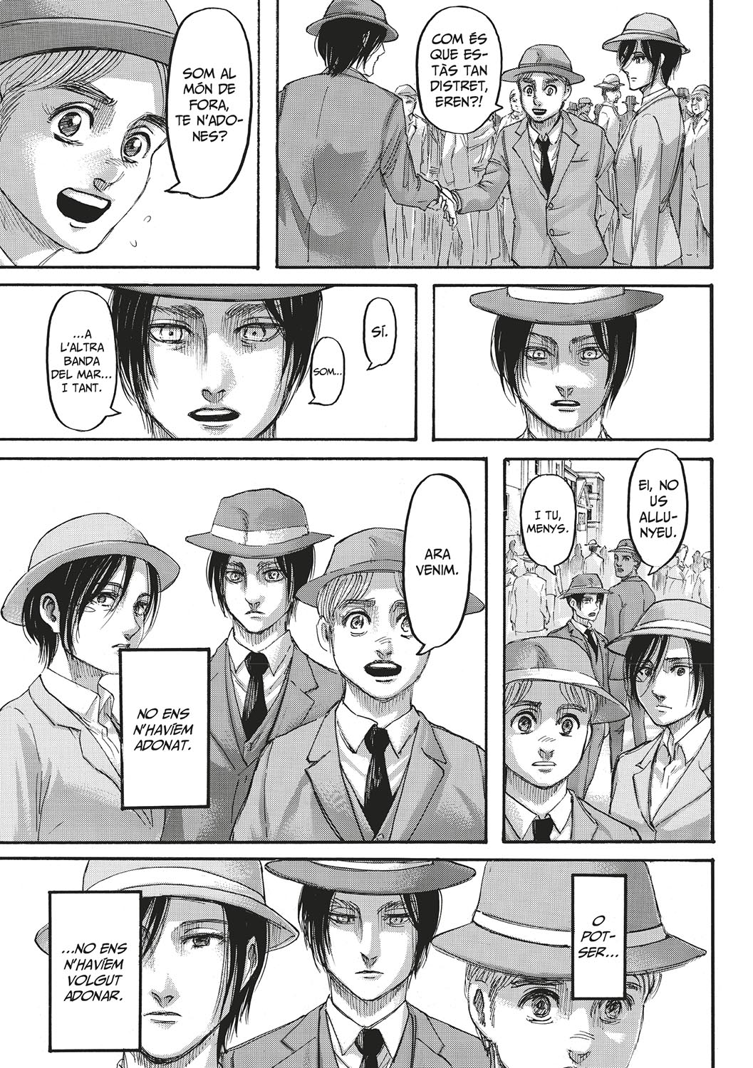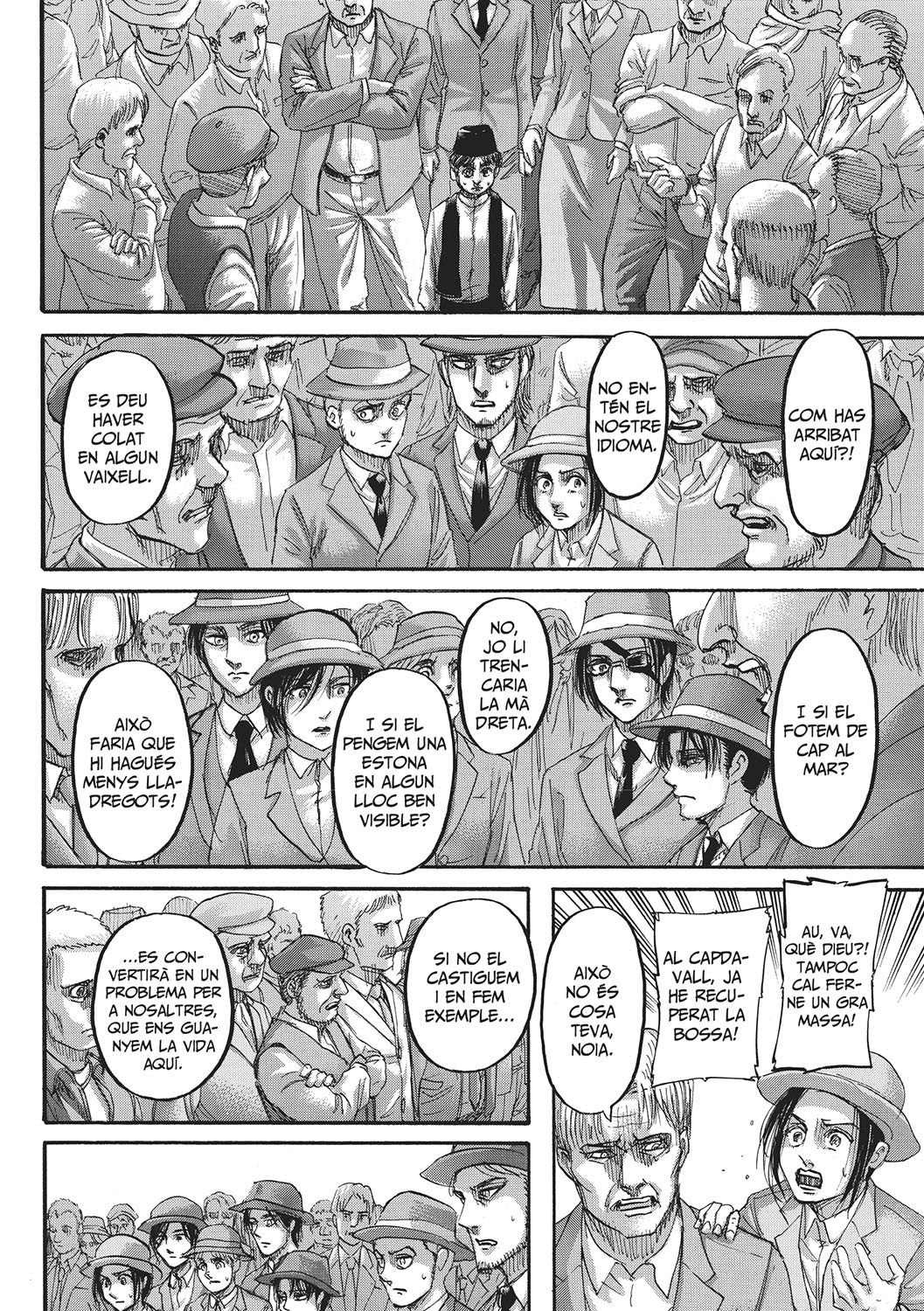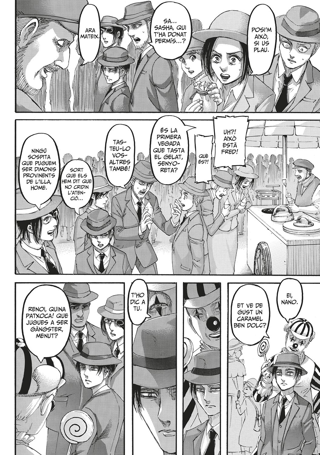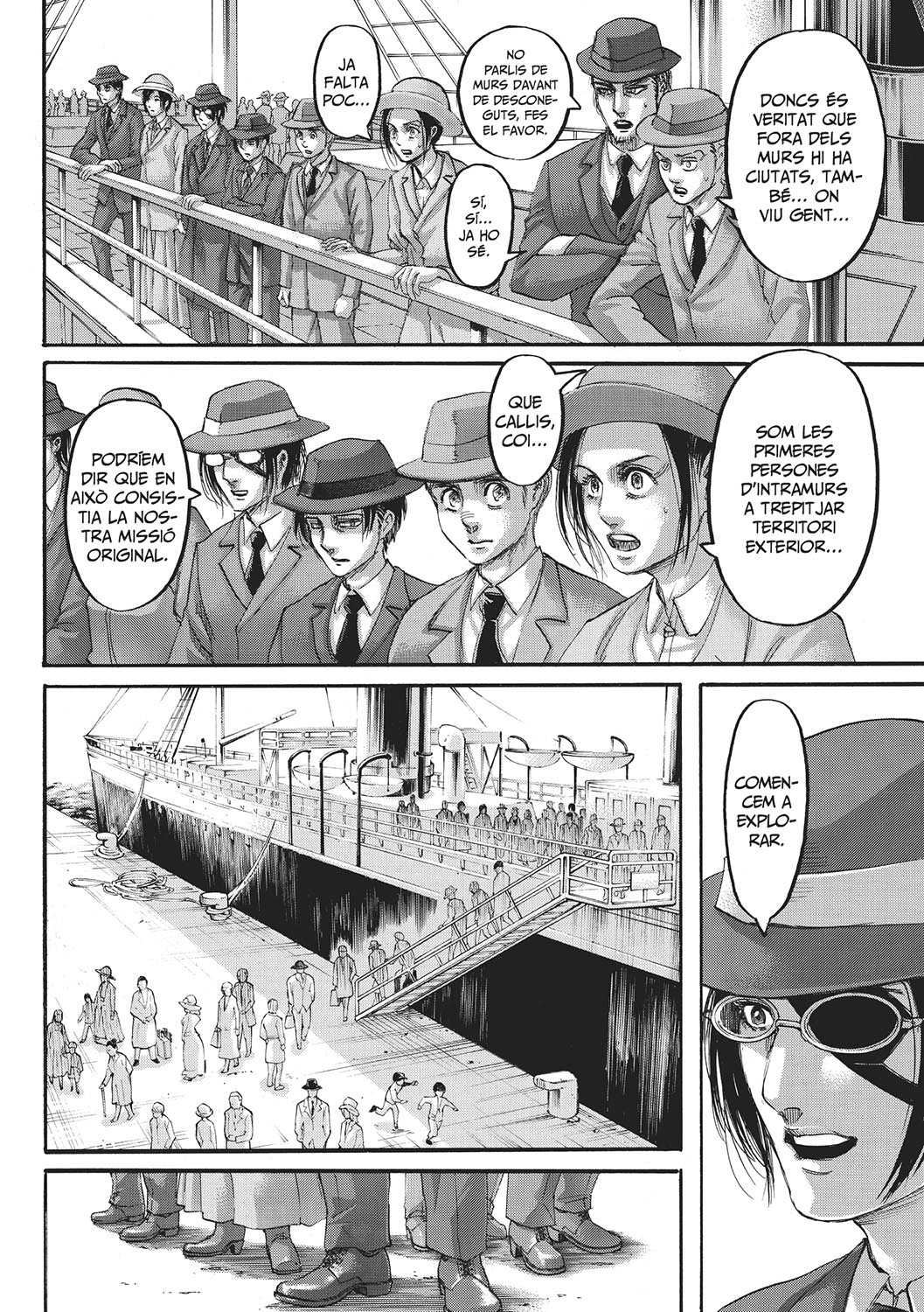 L’Eren i el cos d’Exploració viatgen a Marley, el món de fora, i aviat descobreixen que els eldians són discriminats. Aquest fet reforça la intenció de l’Eren d’activar el Retrò, la qual cosa comporta que milions de vides innocents siguin erradicades, amb la intenció de protegir els habitants de l’illa Paradis. Per part seva, els vells aliats comencen a considerar si el preu per aconseguir la tan anhelada llibertat val la pena…