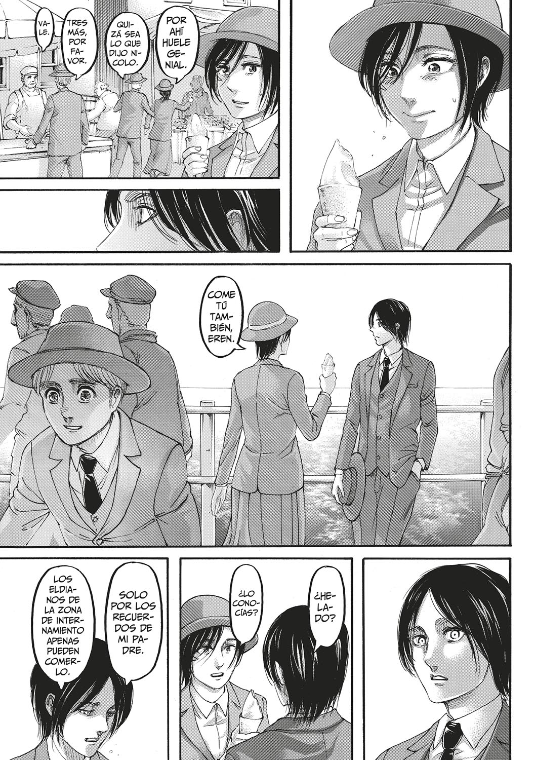 Eren y el Cuerpo de Exploración viajan a Marley y ahí descubren un mundo nuevo, el mundo exterior, en el que los eldianos son ferozmente discriminados. Este hecho refuerza la intención de Eren de desatar el Estruendo, lo que conlleva que millones de vidas inocentes sean erradicadas, con la intención de proteger a los habitantes de la isla Paradis.