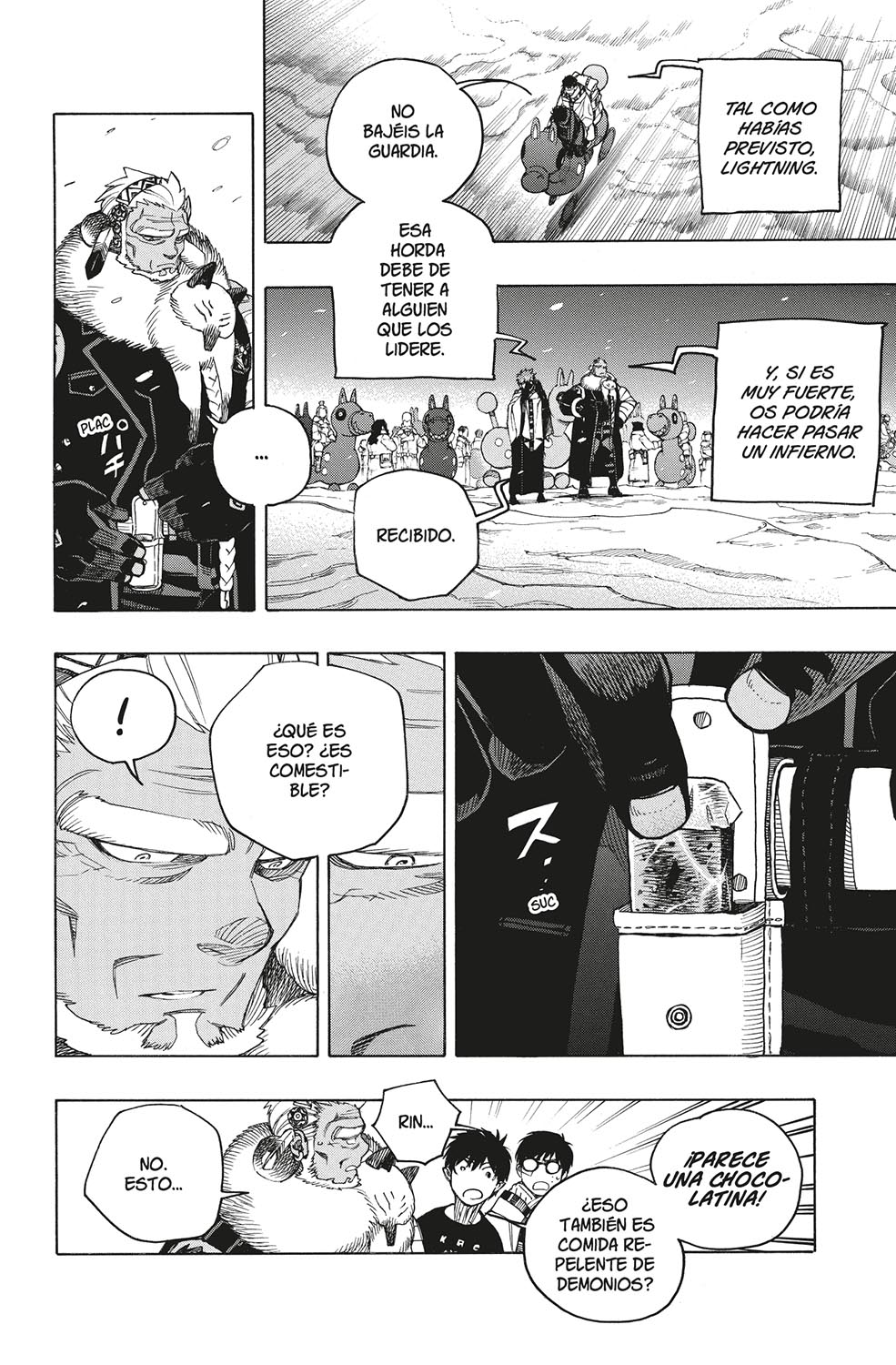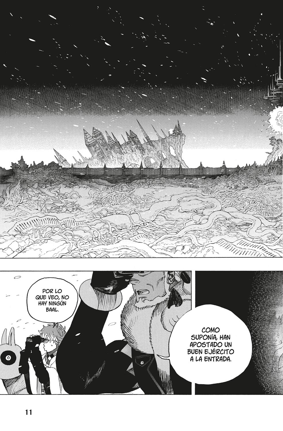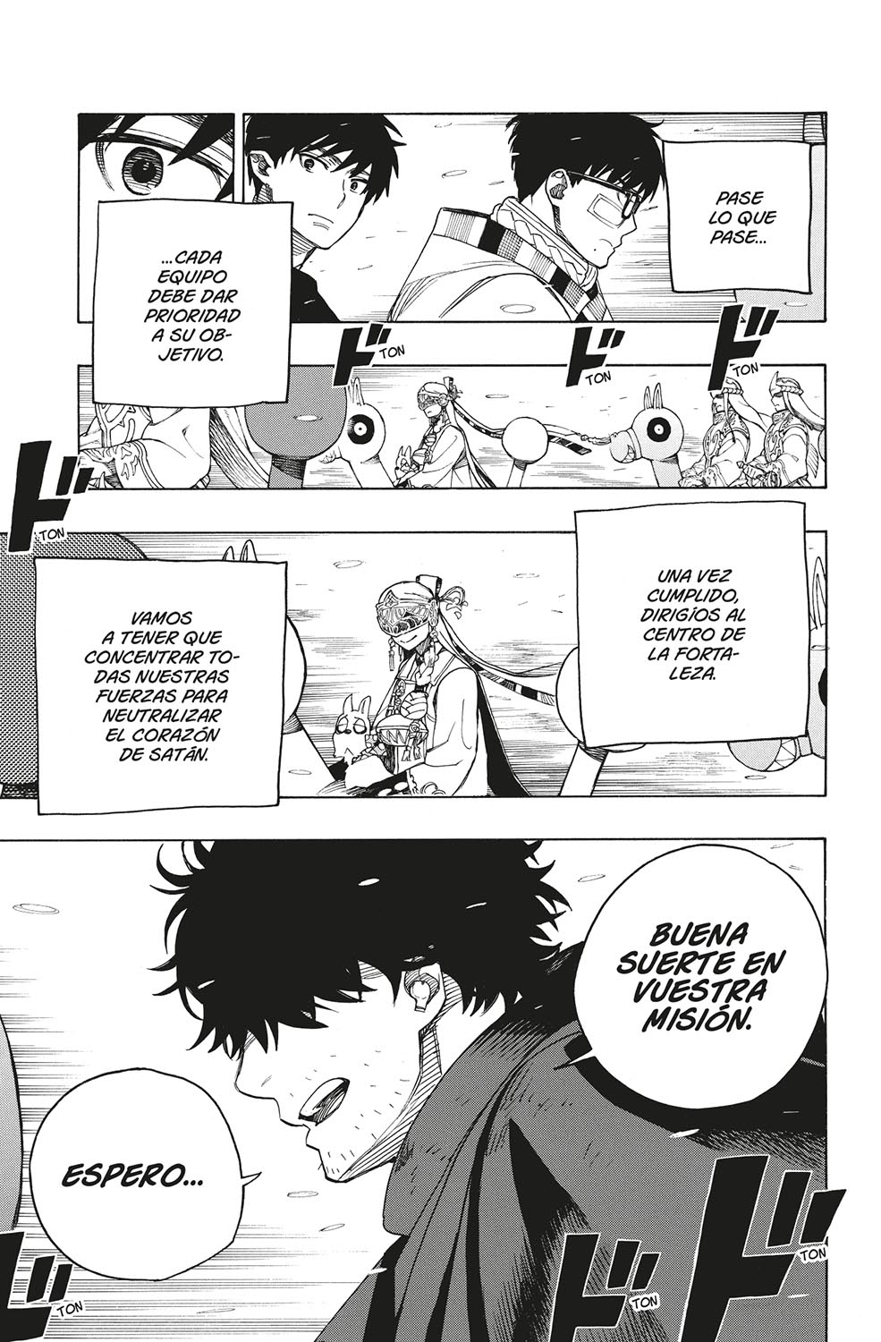 Rin y compañía se dirigen al centro de la fortaleza de Satán, convertida en un laberinto, donde está su corazón. Los demonios de alto nivel Asmodeo y Amon esperan al equipo A frente a la puerta principal. Shura y Osceola se enfrentan a ellos, pero la lucha se complica.