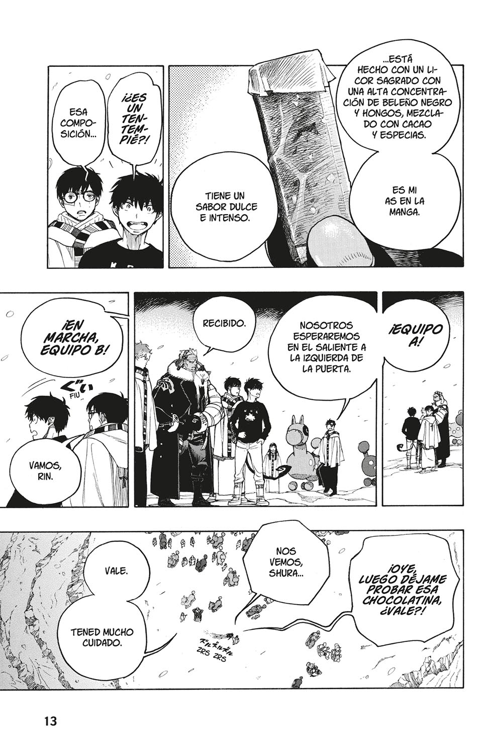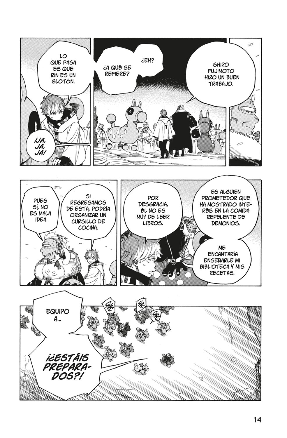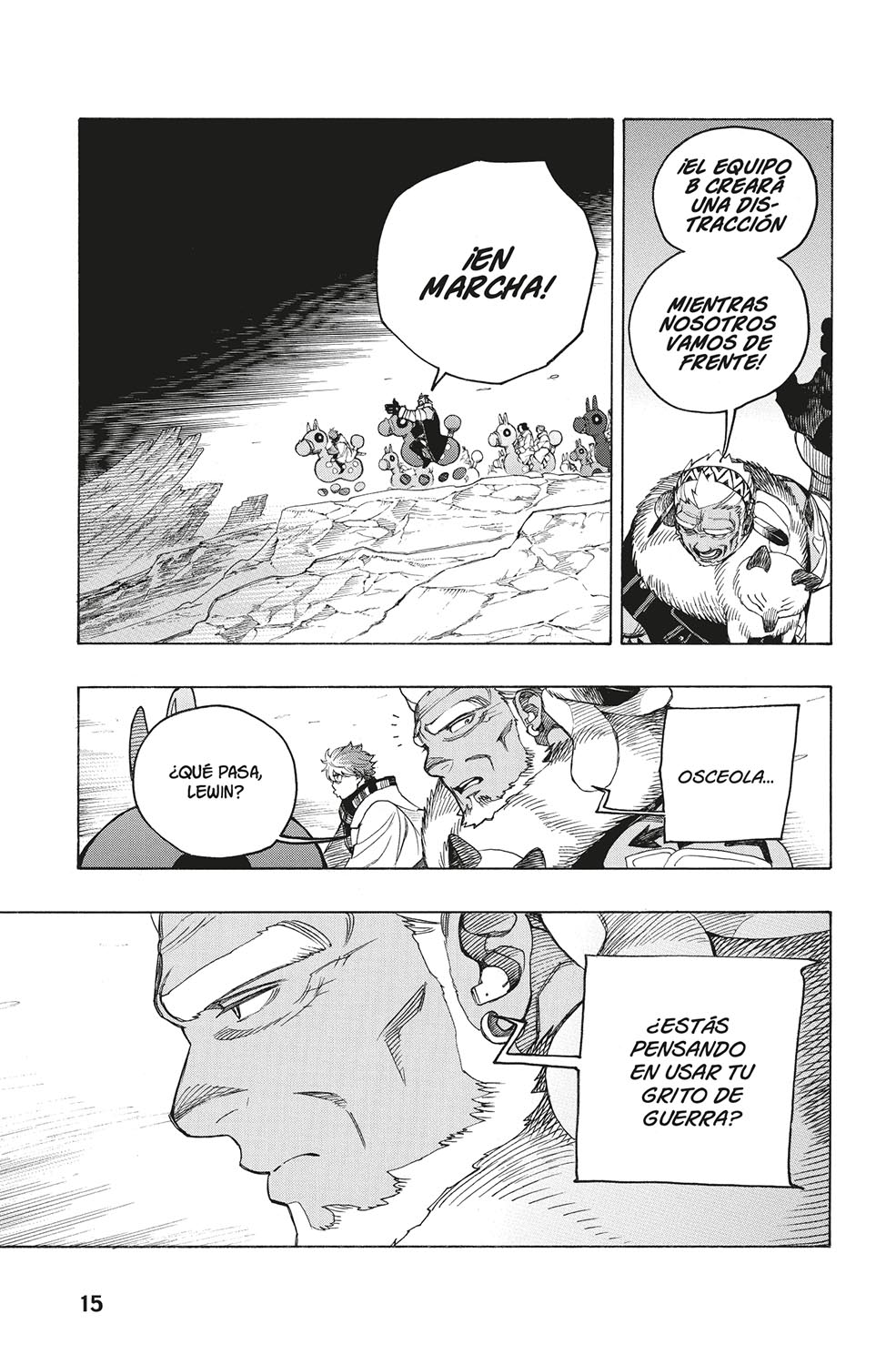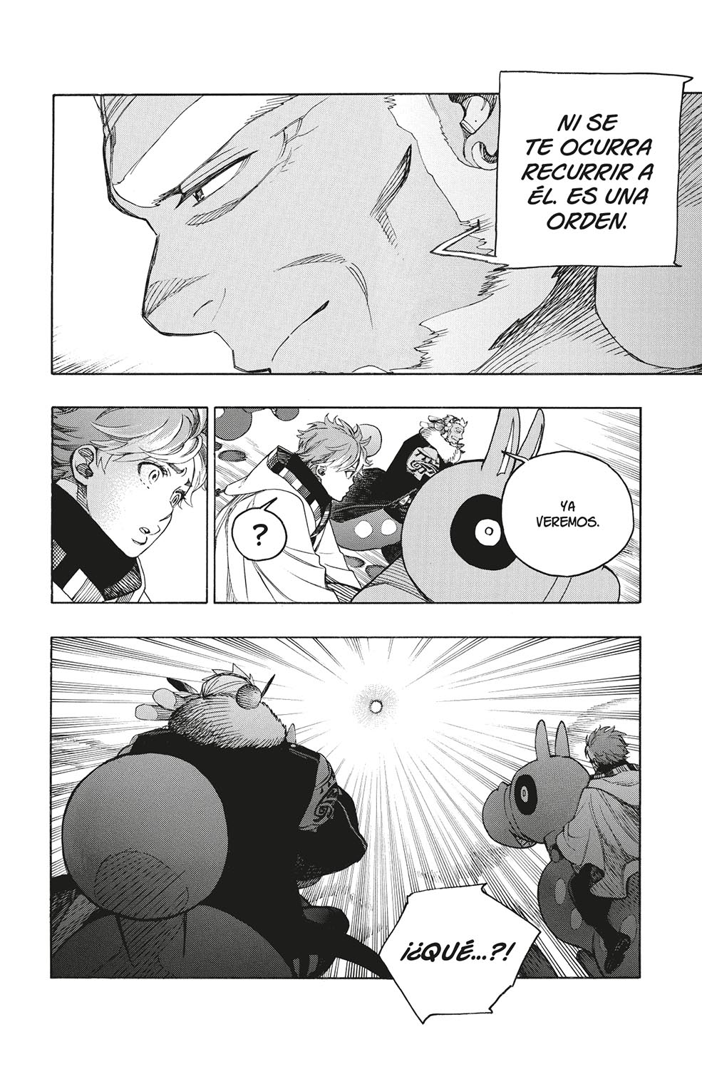 Rin y compañía se dirigen al centro de la fortaleza de Satán, convertida en un laberinto, donde está su corazón. Los demonios de alto nivel Asmodeo y Amon esperan al equipo A frente a la puerta principal. Shura y Osceola se enfrentan a ellos, pero la lucha se complica.