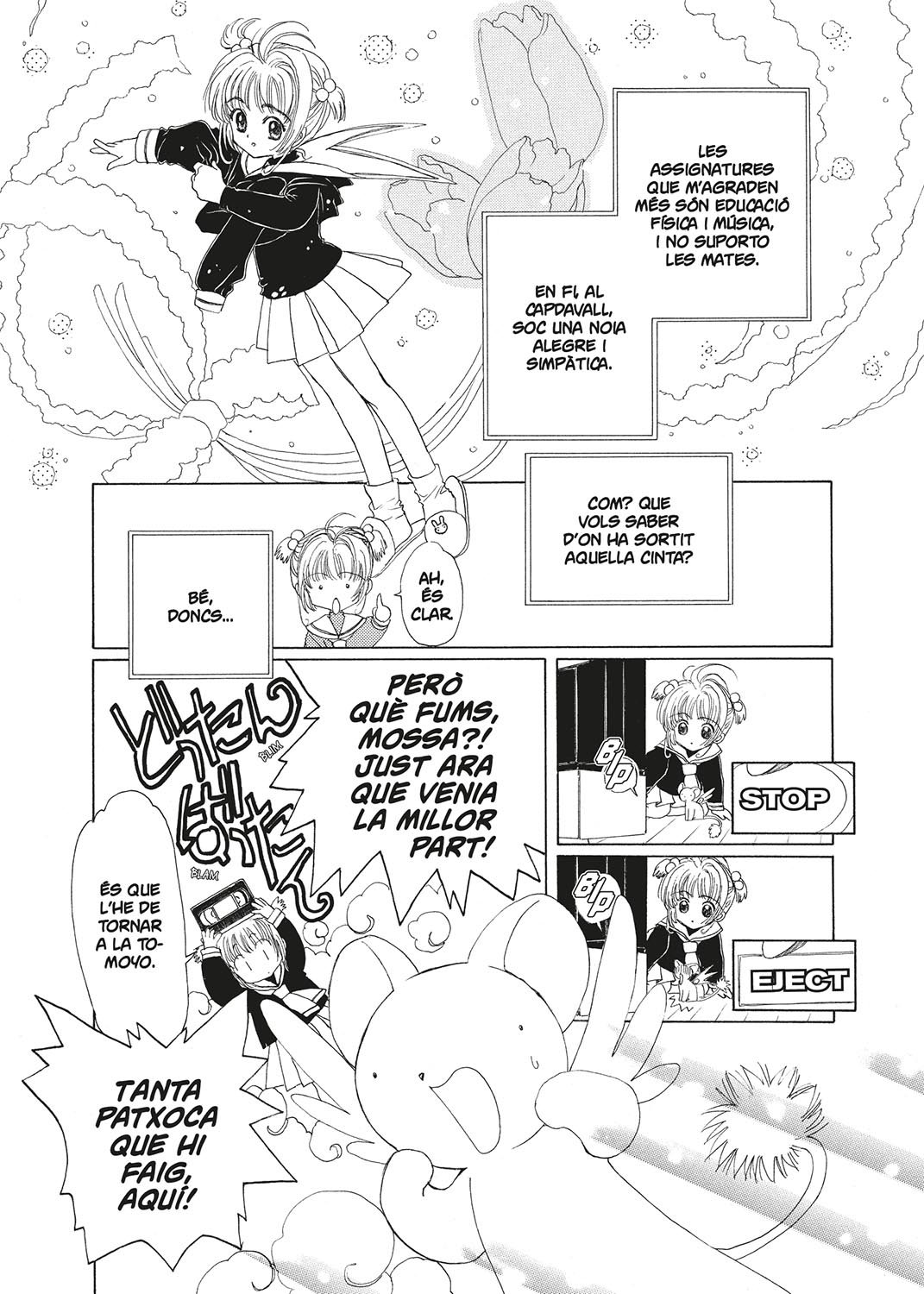 La Sakura Kinomoto és una alumna de primària aparentment normal. Un dia, després d’obrir un llibre màgic, es converteix en la caçadora de cartes, l’única capaç de capturar i dominar les cartes de Clow. Per completar la seva missió comptarà amb l’ajuda d’en Kero, el guardià de les cartes, així com de la seva amiga Tomoyo, que li prepara els modelets més extremats i grava les seves gestes en vídeo.