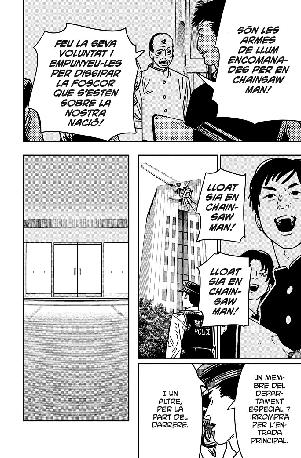 La batuda a gran escala que l’Agència de Seguretat Pública fa a les instal·lacions de l’Església Chainsaw Man posa en perill l’Asa Mitaka, ara esdevinguda el símbol d’aquesta organització religiosa. Quan semblava que els plans d’en Varm havien quedat frustrats, aquest revela les seves autèntiques intencions respecte del Sobirà del Terror. En aquell mateix instant, apareix una horda demoníaca que desferma un caos infernal a la ciutat. Què farà en Denji en una situació tan terrible com aquesta?