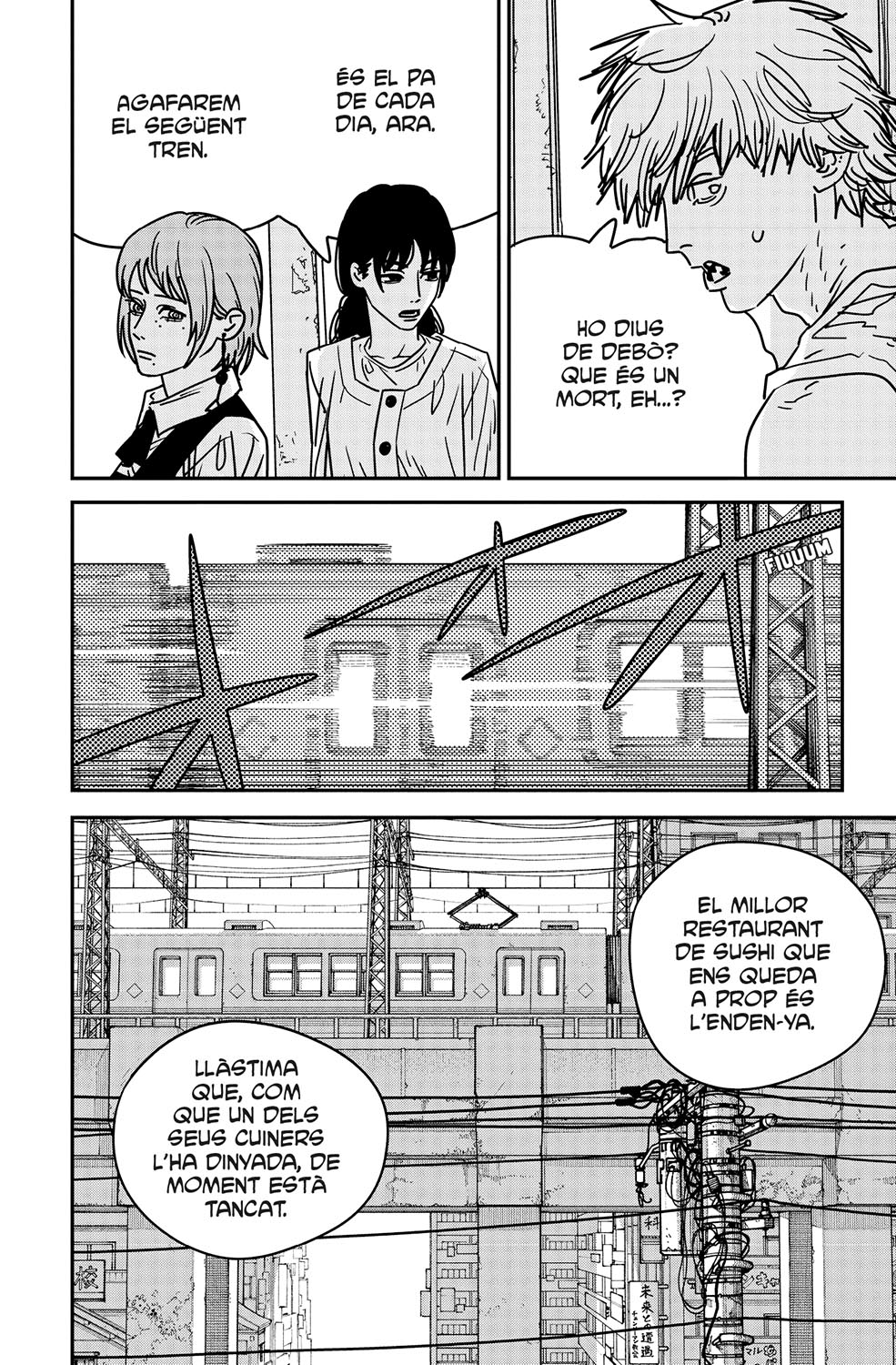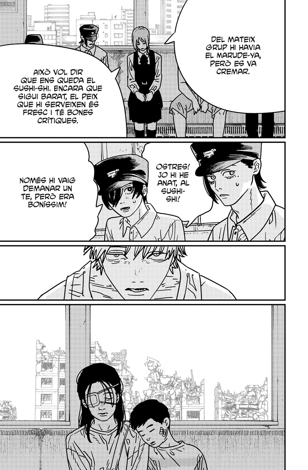 L’Asa i els altres decideixen endur-se en Denji a menjar sushi per mirar d’animar-lo, ja que la desaparició de la Nayuta l’ha deixat fet pols. Però a mig camí, en Samurai Sword li fa una proposta indecent que ho capgira tot. Víctima de la seva pròpia luxúria, desorientat, en Denji es troba amb un plat demoníac al restaurant de sushi. Què deu ser...?
