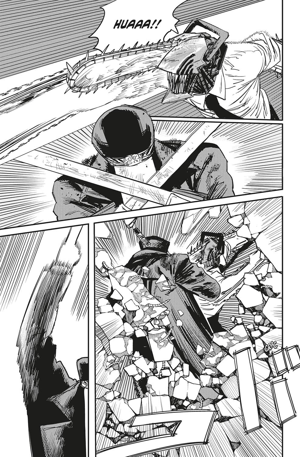 Poc després, la Makima i la resta de membres del departament especial 4 van caient com mosques, víctimes d’una emboscada. Resulta que un misteriós espadatxí i una noia d’allò més estranya es presenten davant d’en Denji amb la intenció d’arrencar-li el cor a petició del dimoni pistola.