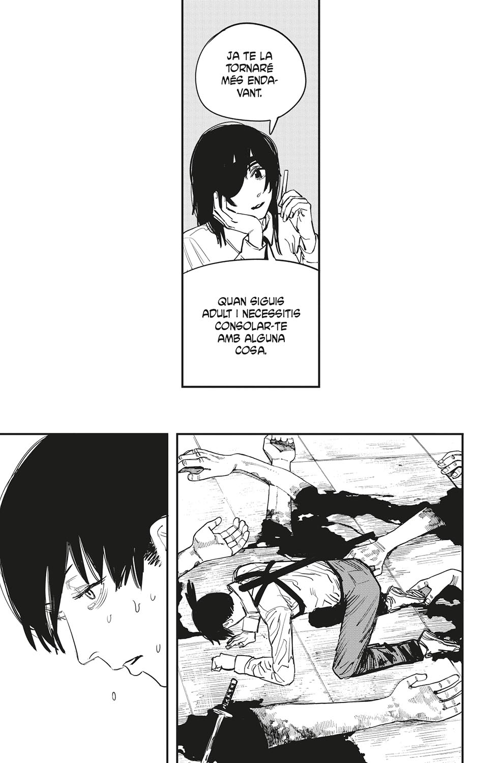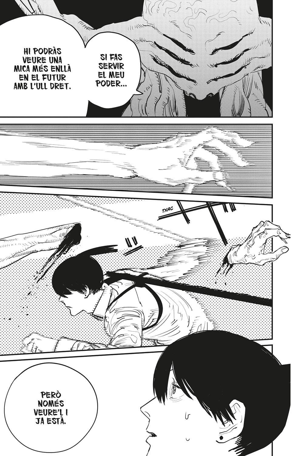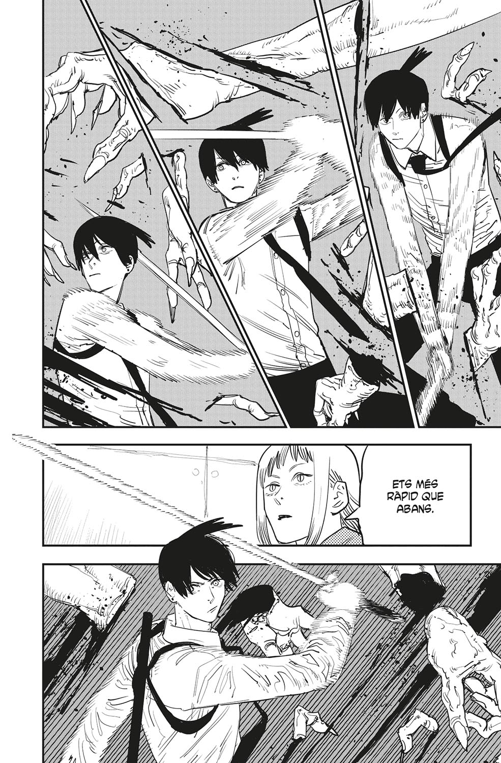 L’Aki es troba cara a cara amb el dimoni que controlava la Himeno. Què li deu passar pel cap, a aquest paio consumit per la set de venjança...?! D’altra banda, en Denji es torna a enfrontar a en Samurai Sword! La motoserra contra la katana: quin serà el desenllaç d’aquest combat tan sanguinari?! La pugna pel cor d’en Denji es precipita cap a un final d’allò més inesperat!