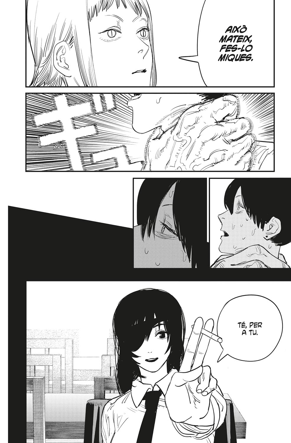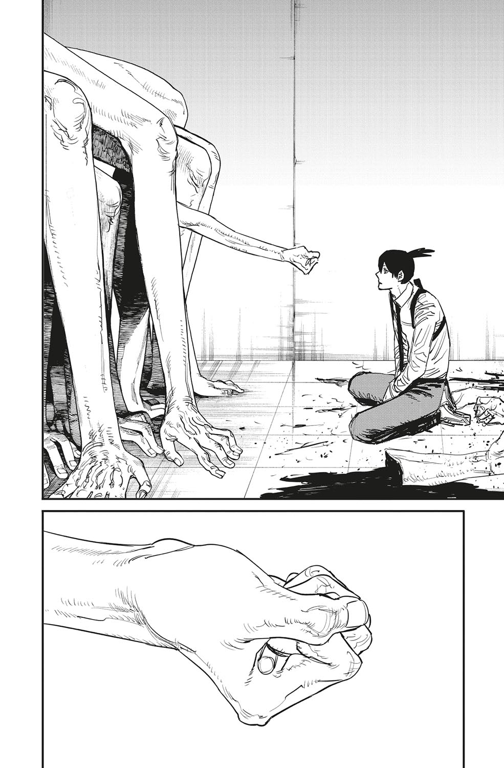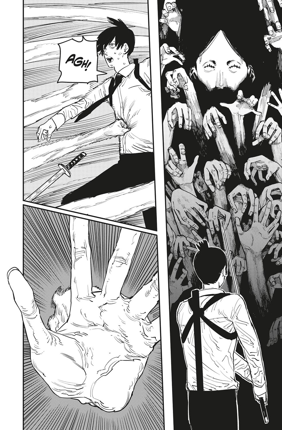 L’Aki es troba cara a cara amb el dimoni que controlava la Himeno. Què li deu passar pel cap, a aquest paio consumit per la set de venjança...?! D’altra banda, en Denji es torna a enfrontar a en Samurai Sword! La motoserra contra la katana: quin serà el desenllaç d’aquest combat tan sanguinari?! La pugna pel cor d’en Denji es precipita cap a un final d’allò més inesperat!