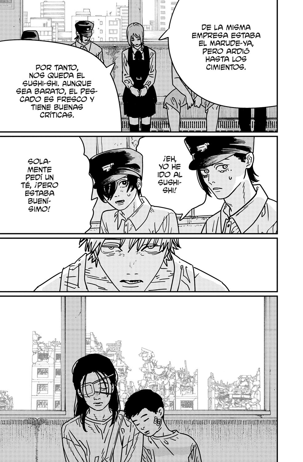 Asa y los demás deciden llevar a Denji a comer sushi para animarlo, ya que la desaparición de Nayuta lo ha dejado para el arrastre. Sin embargo, a mitad de camino, Samurai Sword le hace una picante sugerencia que provocará que el corazón le dé un vuelco.