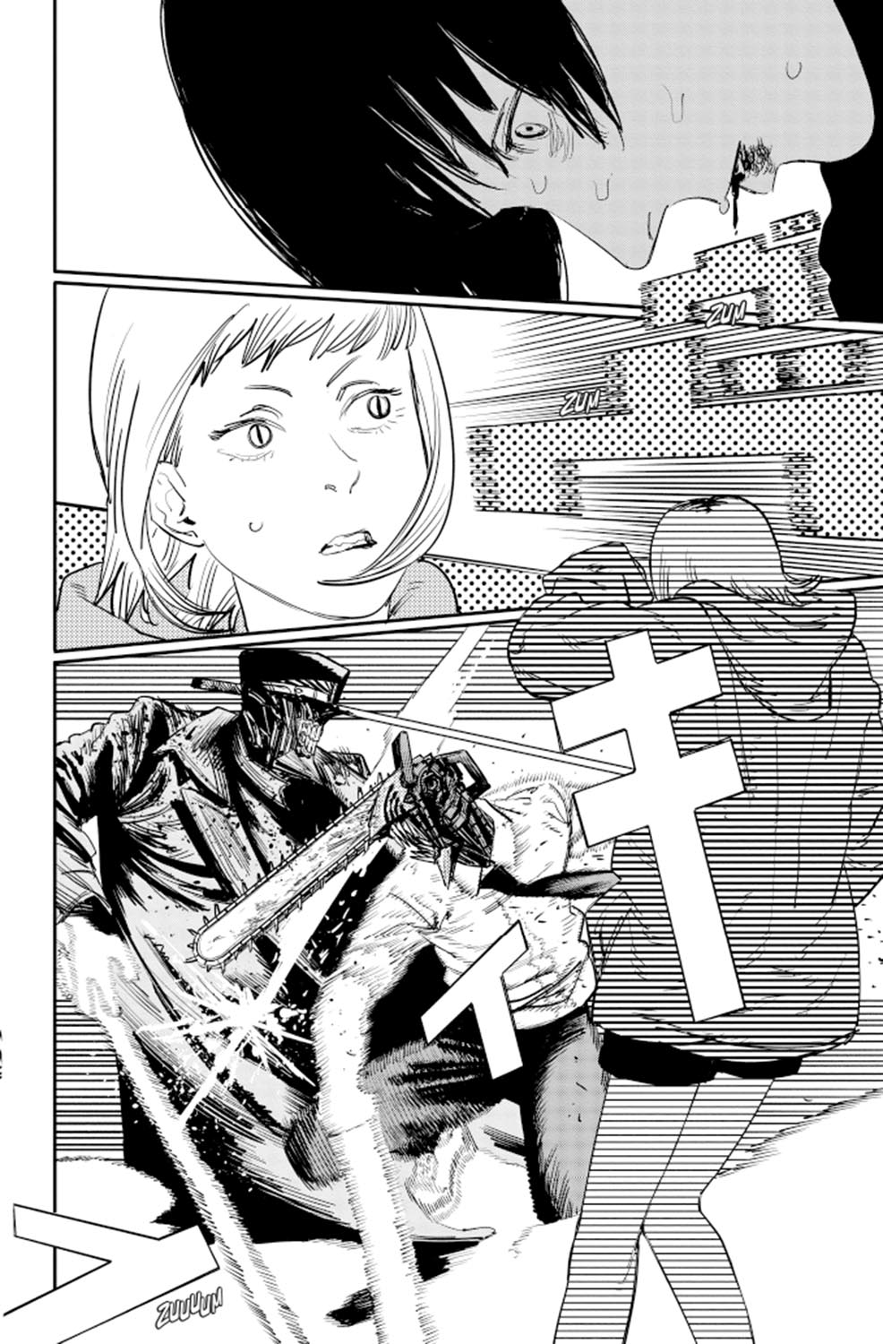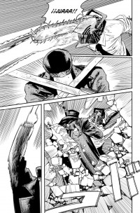 Himeno le da un beso a Denji como premio por haberlos sacado del hotel, pero va tan borracha que acaba vomitándole encima… Poco después, Makima y el resto del Departamento Especial 4 caen víctimas de una emboscada. Resulta que un misterioso espadachín y una extraña joven se presentan ante Denji con la intención de arrebatarle el corazón a petición del Demonio Pistola. ¡¿Dará Denji un paso adelante en medio de toda esta locura?!