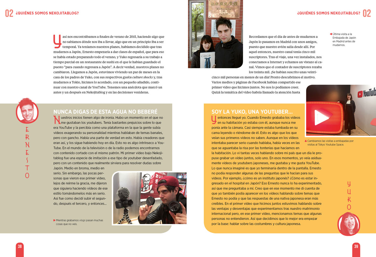 Yuko y Ernesto, más conocidos en la vlogosfera como Nekojitablog, han cautivado a sus más de dos millones de seguidores son su amena y divertida forma de explorar todos los aspectos de la cultura japonesa, con temas tan dispares como consejos para socializar en Japón o alquilar un piso si eres extranjero, consejos de viaje, artilugios estrafalarios, recetas…