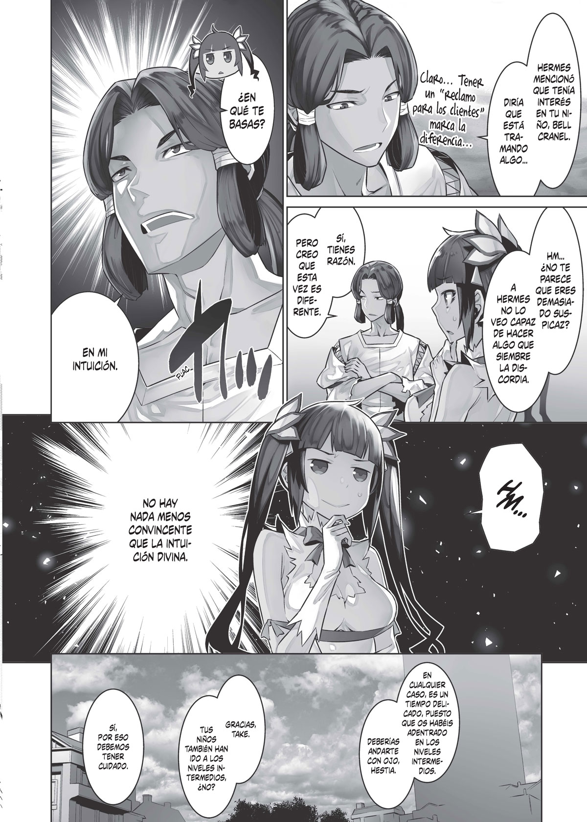 Pero de repente empieza la procesión de monstruos, y la situación da un vuelco cuando se encuentran cara a cara con unos monstruos que les encasqueta otro grupo. Dado que no pueden regresar a la superficie, Bell se ve forzado a tomar una decisión... Mientras tanto, Hestia, preocupada porque Bell no vuelve, organiza un grupo de búsqueda y opta por entrar en la Mazmorra, un lugar vedado a los dioses.