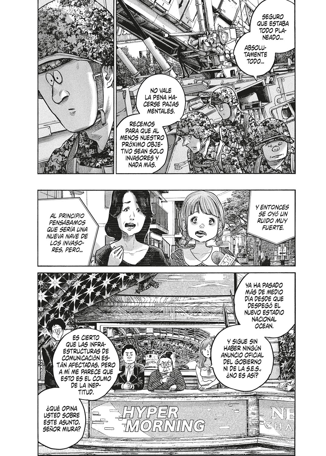 La nave nodriza que, durante tantos años, ha sobrevolado Tokio y se ha convertido en un elemento más del paisaje urbano, parece a punto de explotar. ¿Podrán reaccionar a tiempo los ciudadanos del mundo? ¿Seguirán con sus anodinas preocupaciones y pueriles intereses cuando la humanidad está a un paso de la destrucción?