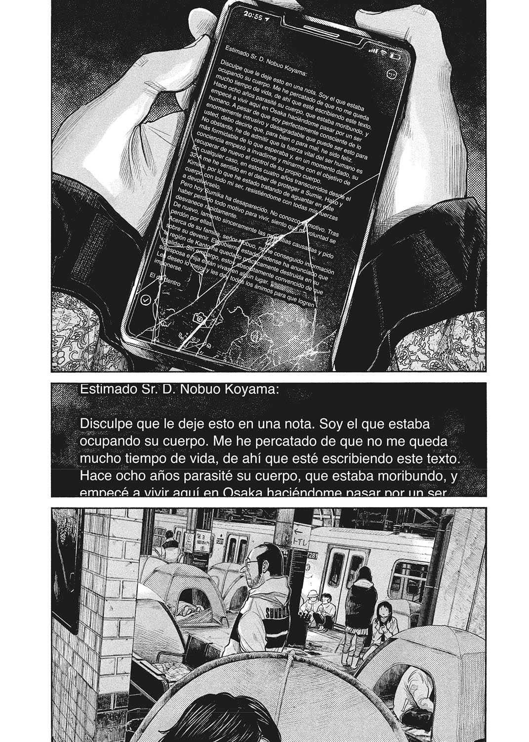 La nave nodriza que, durante tantos años, ha sobrevolado Tokio y se ha convertido en un elemento más del paisaje urbano, parece a punto de explotar. ¿Podrán reaccionar a tiempo los ciudadanos del mundo? ¿Seguirán con sus anodinas preocupaciones y pueriles intereses cuando la humanidad está a un paso de la destrucción?