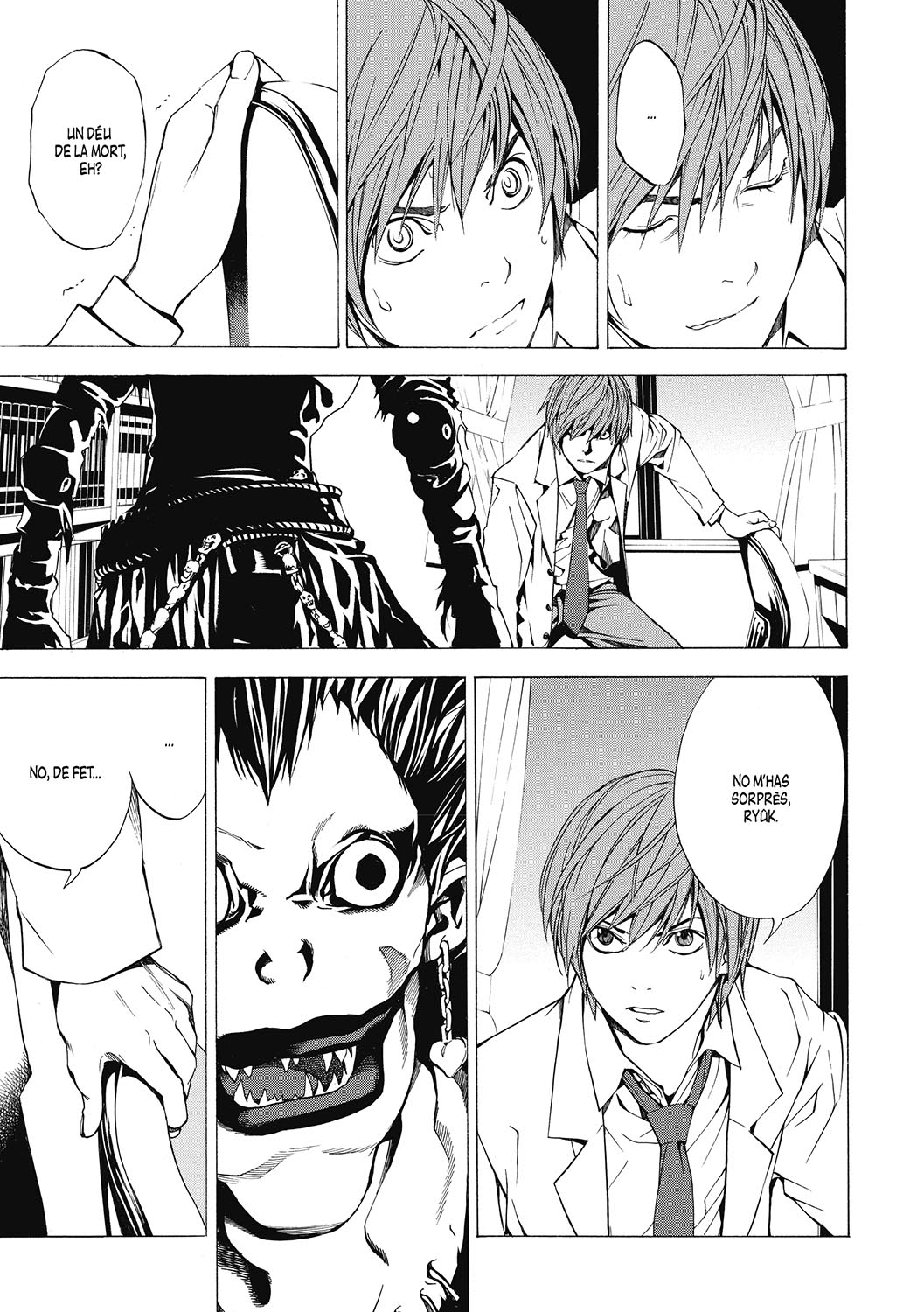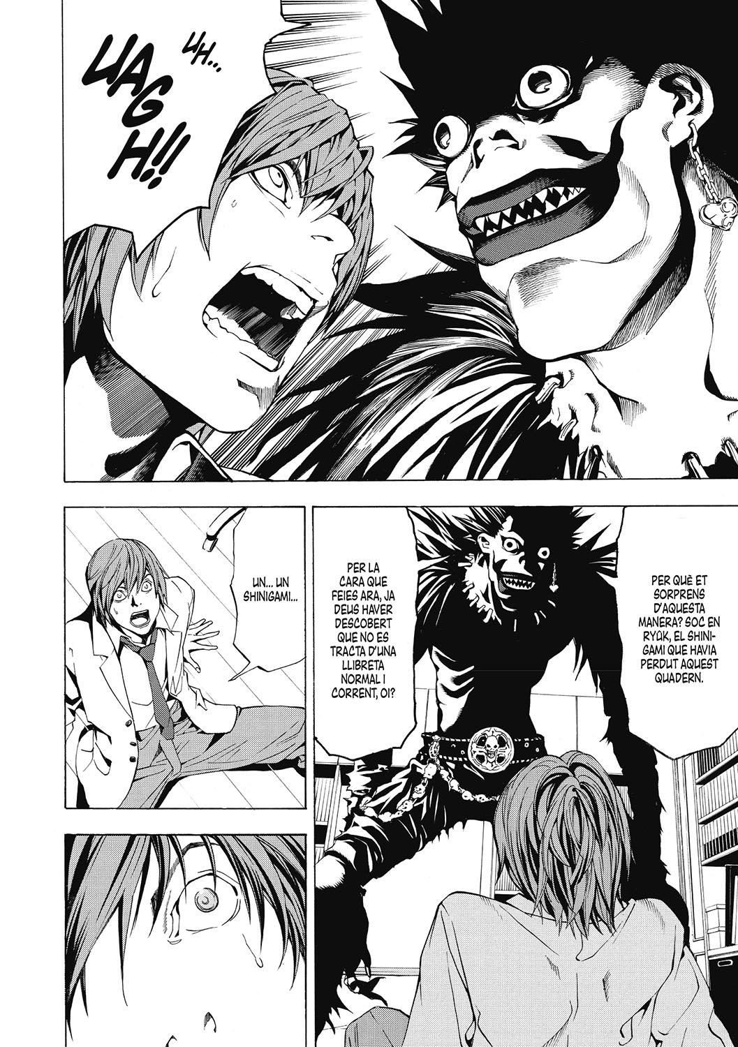 En Light Yagami és un estudiant model al qual tots auguren un futur brillant, tot i que a ell la seva vida l’avorreix solemnement. Necessita un repte, alguna cosa que el faci sentir viu. I ho troba en el Quadern de la Mort que el shinigami Ryuk deixa caure en el Món Humà. Ara en Light, amb el poder de la vida i la mort a les seves mans, aspira a convertir-se en el déu del nou món. Encara que per aconseguir-ho, abans haurà d’evadir el setge que el misteriós L ha posat al voltant seu…