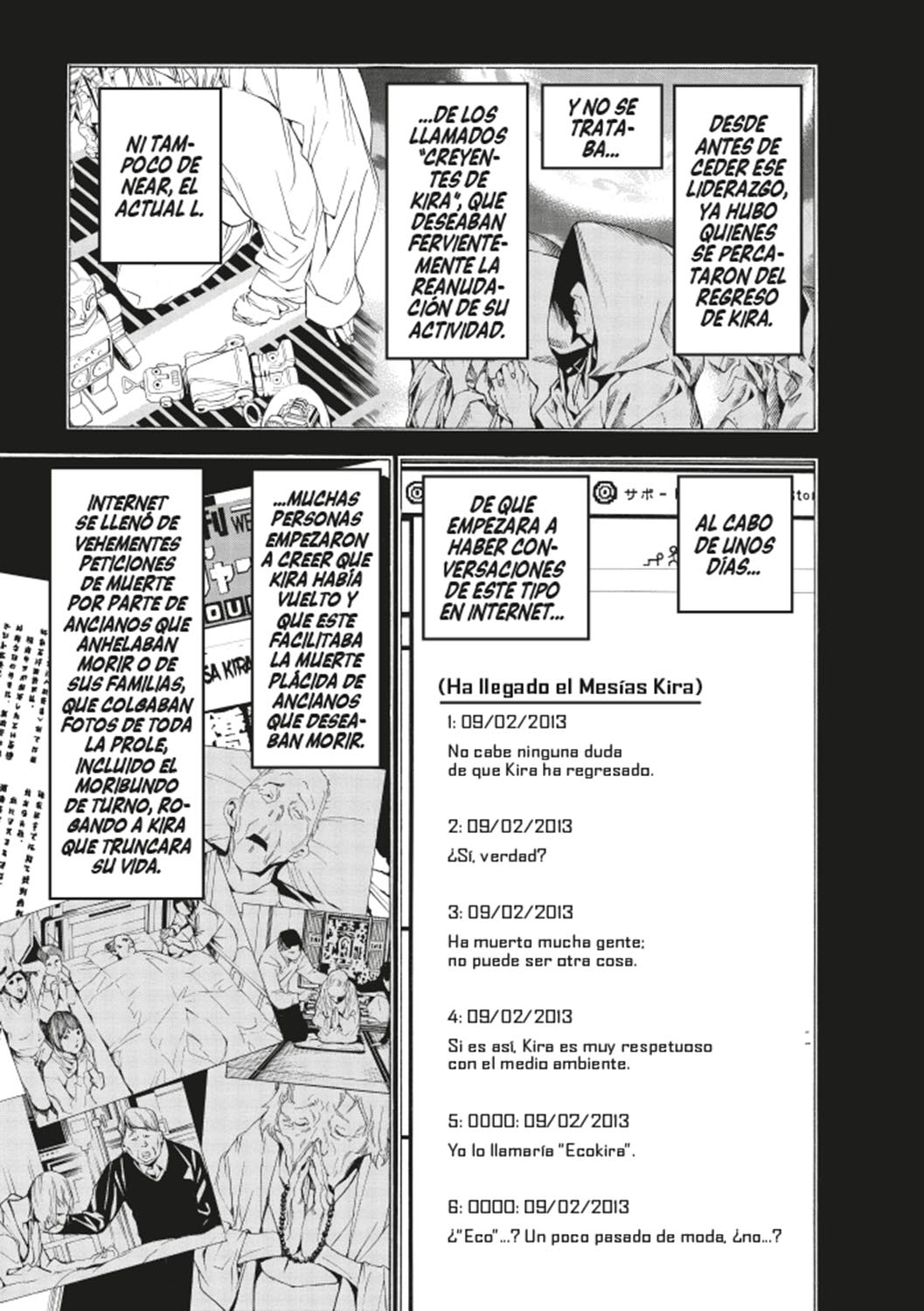 Este tomo recopilatorio incluye la historia de C Kira, en el que se narra lo que ocurrió tras el showdown entre Light Yagami y L, y el one-shot aKira, donde Minoru Tanaka conoce al shinigami Ryuk y utiliza el cuaderno de muerte de forma sorprendente. Además, podremos leer la historia piloto de Tarô Kagami, historias cortas sobre el pasado de L y varias tiras cómicas.