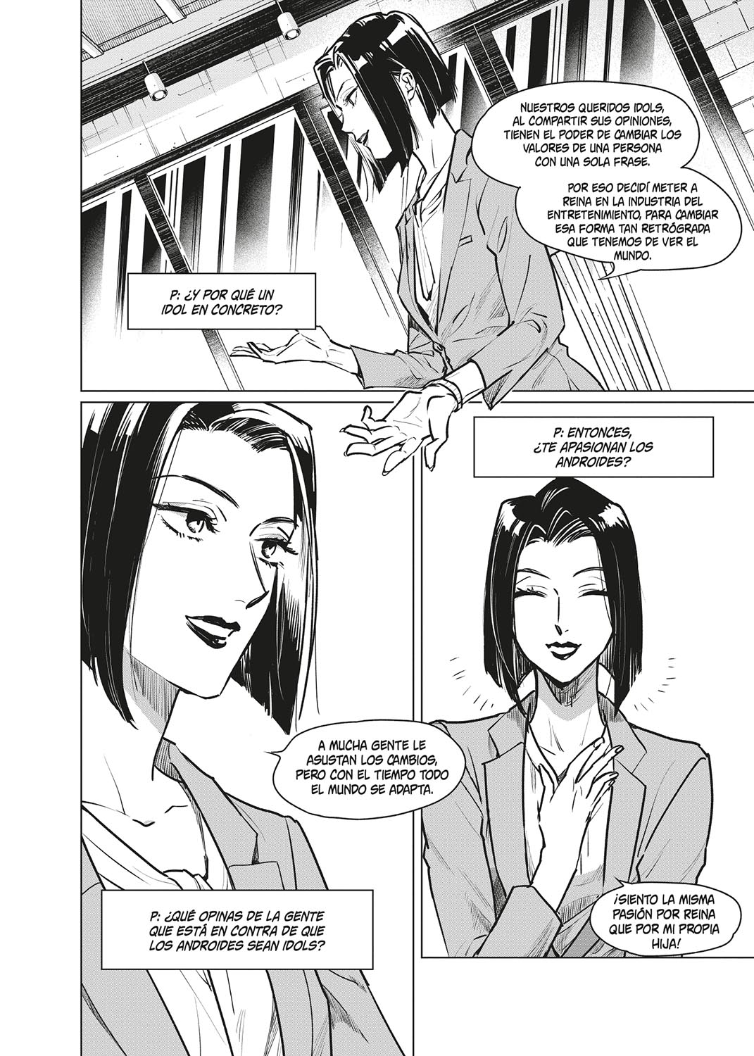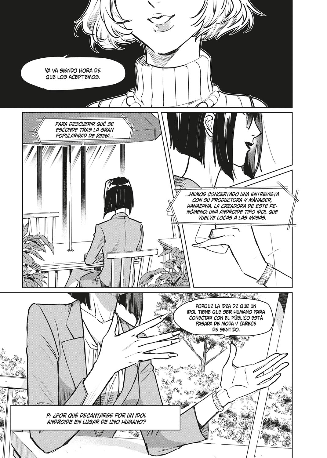 Año 2038, Tokio. Los androides, réplicas robóticas idénticas a los humanos, son cada vez más populares y empiezan a reemplazar muchos puestos de trabajo. Mientras el movimiento antiandroides crece de forma exponencial en los Estados Unidos, la androide Reina, cantante e ídolo de masas, gana cada día más popularidad en Japón, demostrando que los androides pueden dedicarse a casi cualquier cosa, incluida la industria del entretenimiento.