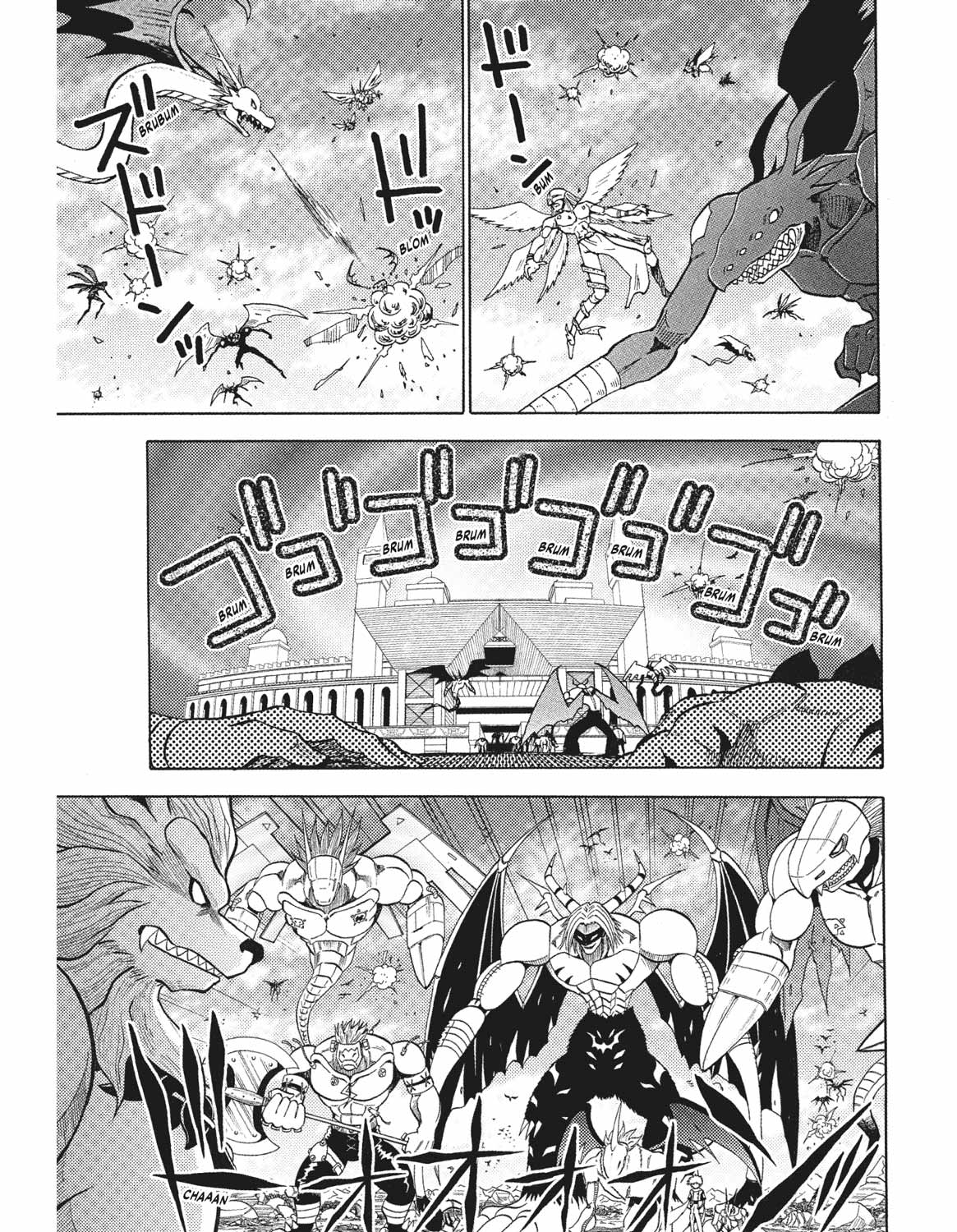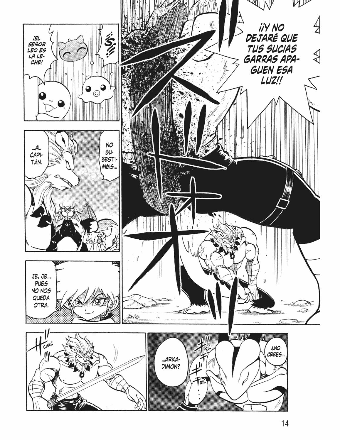 Los Digimon que anhelan la paz en el Digimundo se enfrentan al ejército demoníaco que planea apoderarse del castillo del Ángel Sagrado. El comandante Leo lucha con valentía, pero cae derrotado ante el equipo formado por Neo y Arkadimon, los más fuertes del ejército de Demon...