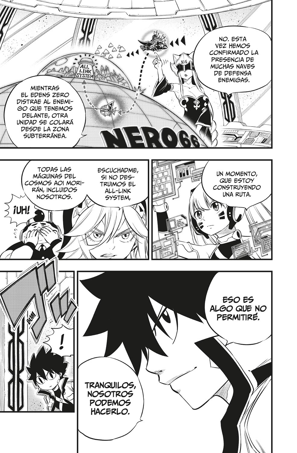 El grupo de Shiki, guiado por Laguna, entra en contacto con Oasis, el ejército rebelde que se oculta en Sandra, el planeta de arena. Logran convencer a su líder, Goodwin, para ir juntos al espacio, a detener a Poseidon Shura, que planea matar a todas las máquinas. En ese momento, en el sector espacial del planeta Nero 66, empieza un combate entre Shura y Eraser, miembro de Oración Seis Interestelar. La tripulación del Edens Zero intentará aprovechar la ocasión para entrar en el planeta.