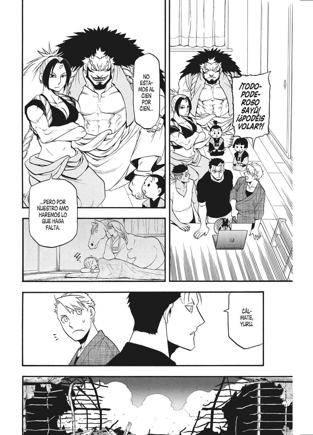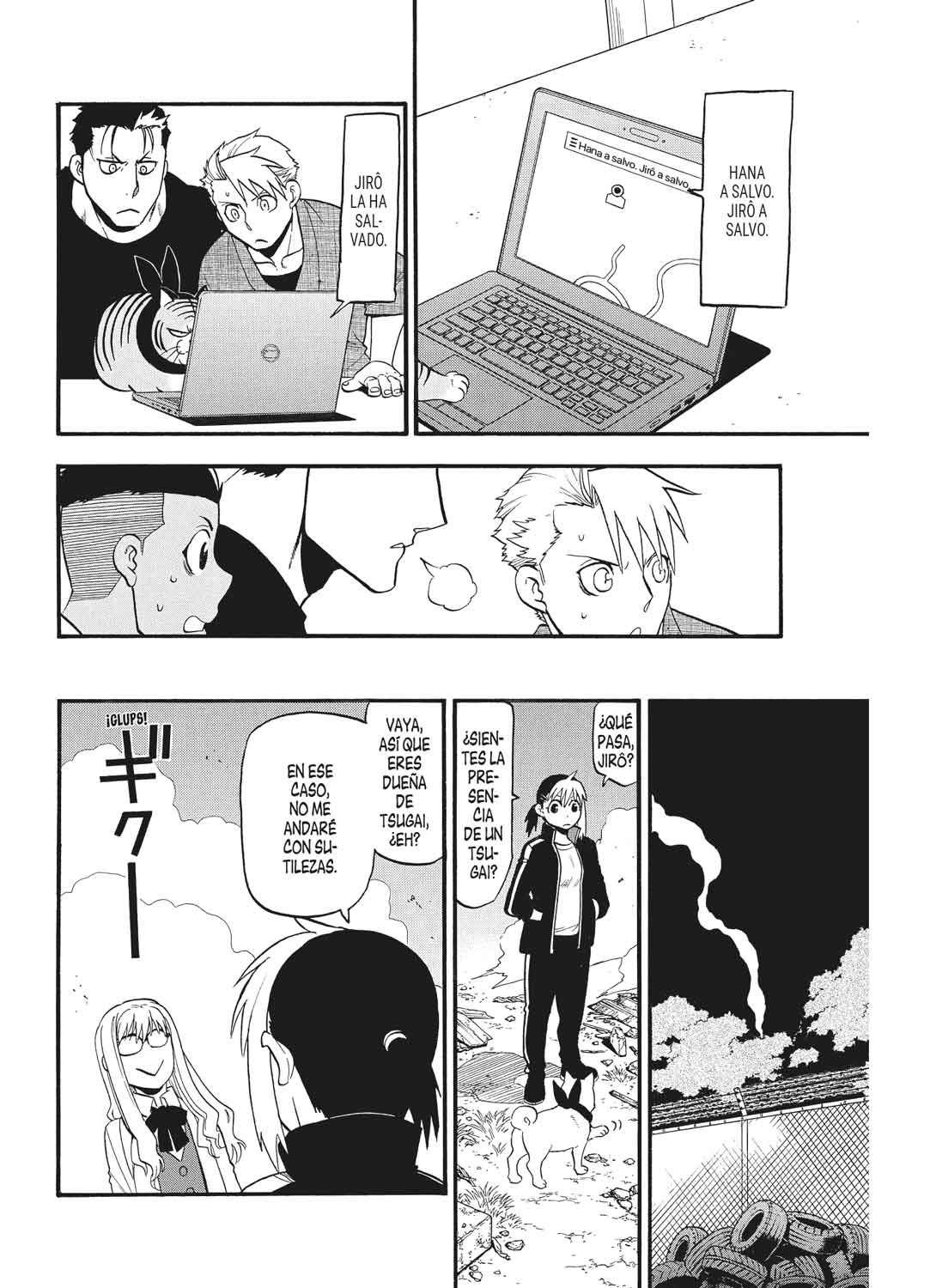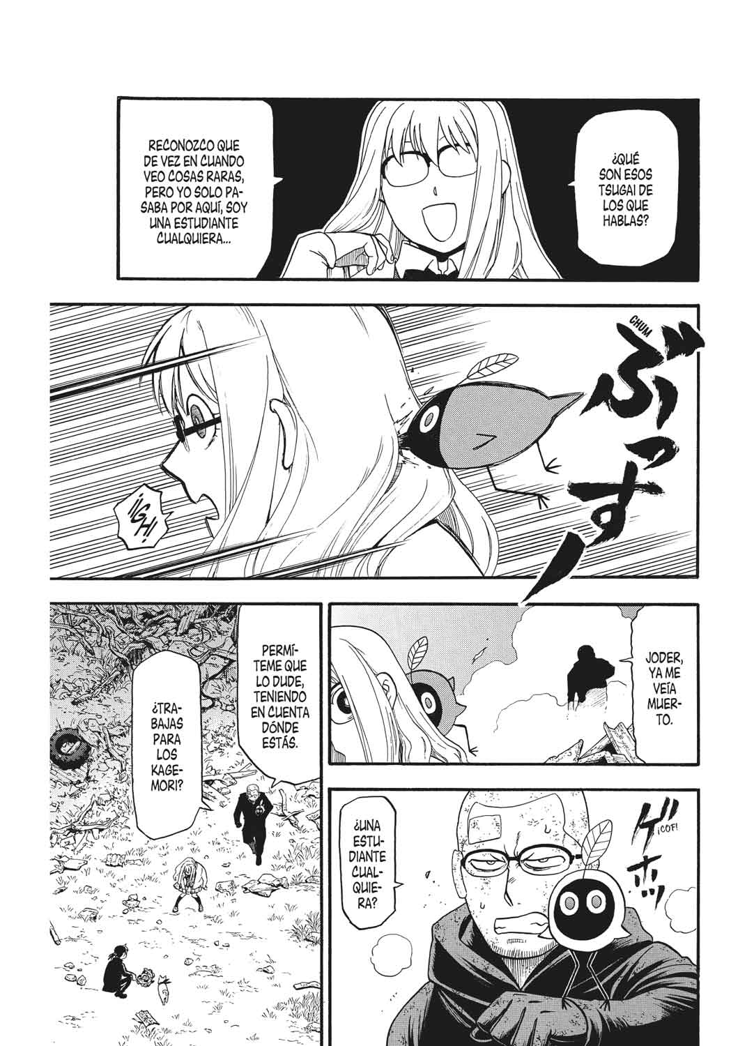 EL TRAIDOR AKIO ESCAPA DE LOS KAGEMORI ¿Ya has leído todas las obras publicadas de Hiromu Arakawa y te has quedado con ganas de más? ¡Ya puedes adentrarte en su nuevo manga lleno de acción y espíritus ¡Con casi 4 millones de ejemplares vendidos en Japón y futuro anime! Los Kagemori regresan a la mansión con el propósito de interrogar al traidor de Akio y a sus tsugai, pero estos explotan con una bomba que tenían preparada y Akio escapa. ¿Es posible que haya sido obra de la gente de Nishinomura, una aldea supuestamente extinta?