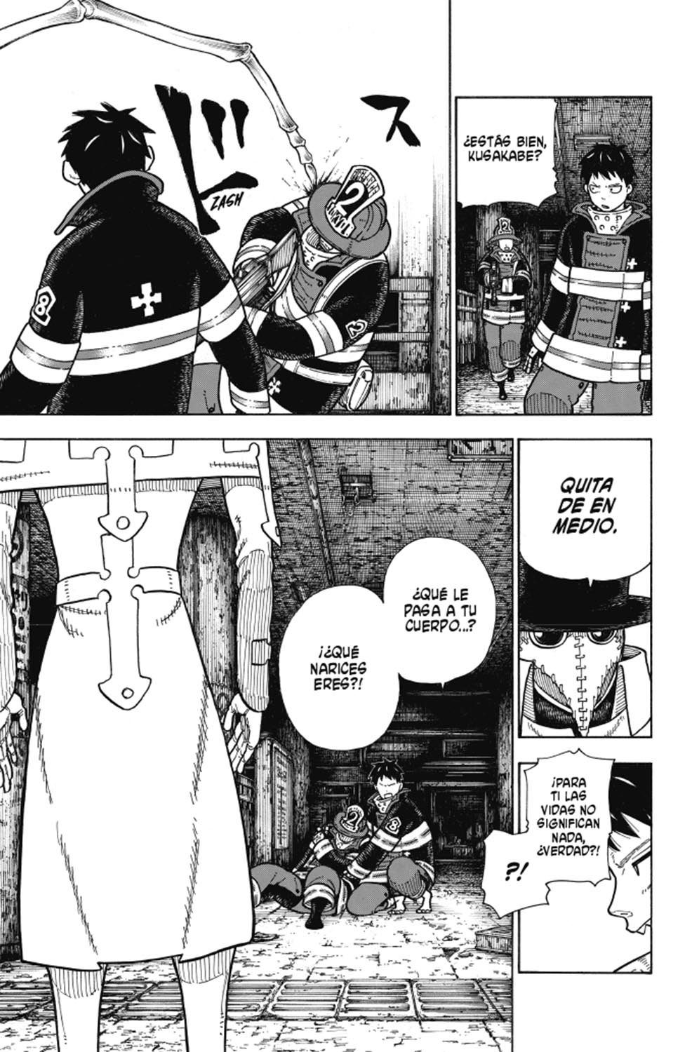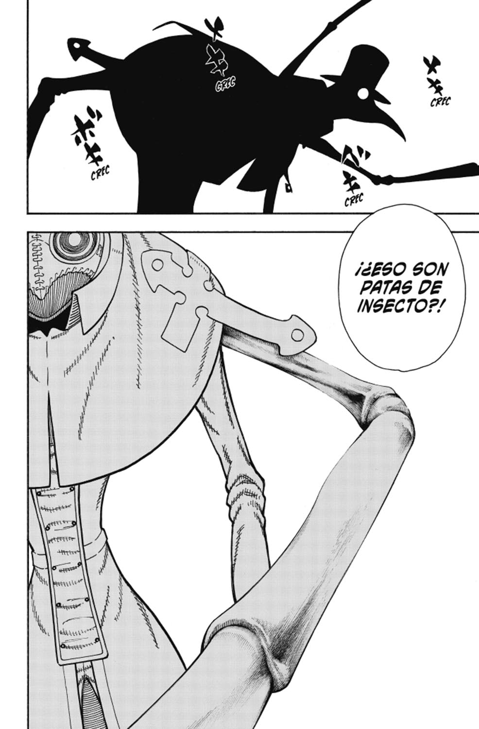 El ataque de los innumerables “infernales” y los Caballeros del Humo Purpúreo han causado numerosas bajas mortales entre los miembros de los escuadrones y las peleas son cada vez más violentas. Shinra se enfrenta al Dr. Giovanni, que ha modificado su cuerpo hasta el punto de convertirse en un monstruo y empieza a contarle los secretos sobre los insectos y Adora, así como el plan del Pastor que les llevará a la destrucción. ¿Tendrá alguna posibilidad el octavo escuadrón de escapar sin la ayuda de Maki...?