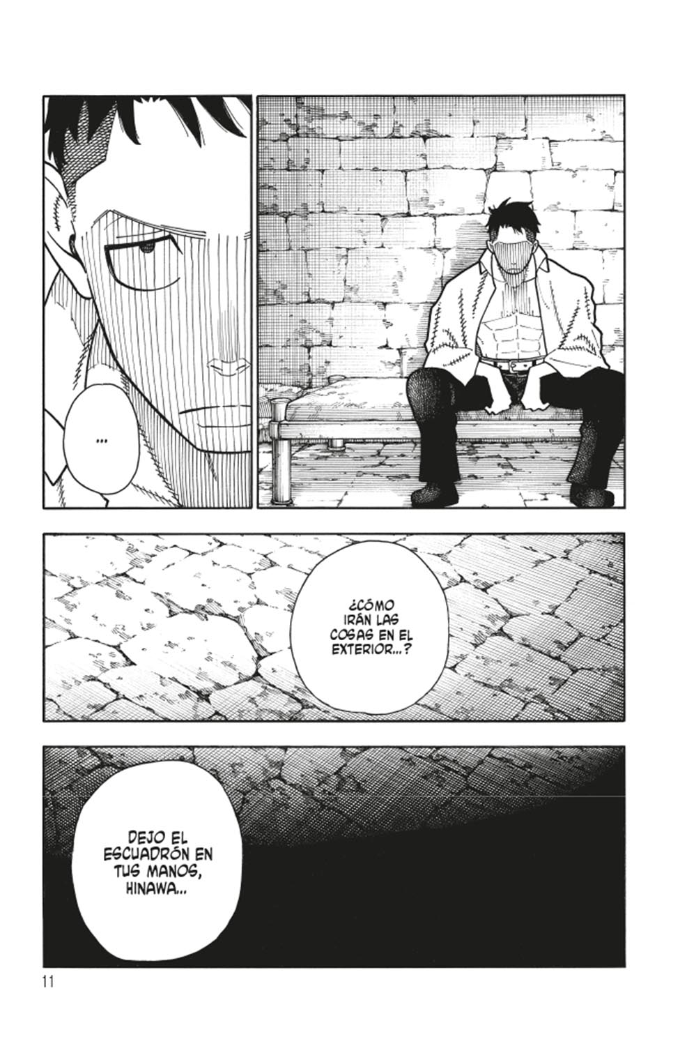 Ôbi, el comandante del octavo escuadrón, ha sido capturado por la Iglesia del Sol Sagrado, que ha decidido unirse al Pastor. Shinra y el resto de sus compañeros se han convertido en rebeldes buscados por el Imperio, pero se alían con Joker, el hombre de las sombras, y juntos se infiltran en la prisión de Fuchû. Allí les esperan el comandante del primer escuadrón y Gold, la verduga experta en luchar contra gente de habilidades especiales