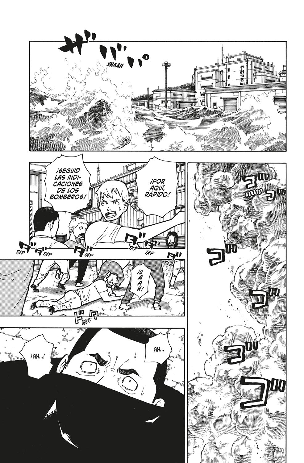 Un “Infernal” gigantesco aparece en el mar junto a un misterioso pilar, amenazando con una destrucción sin precedentes. Mientras tanto, la Iglesia del Sol Sagrado ha celebrado su última misa antes de llevar a cabo los últimos preparativos para la gran catástrofe. Por su parte, Shinra presencia algo de lo más impactante a través de un inesperado Adora Link. ¿Cuál es la verdad tras la gran catástrofe y qué futuro le espera a la humanidad?