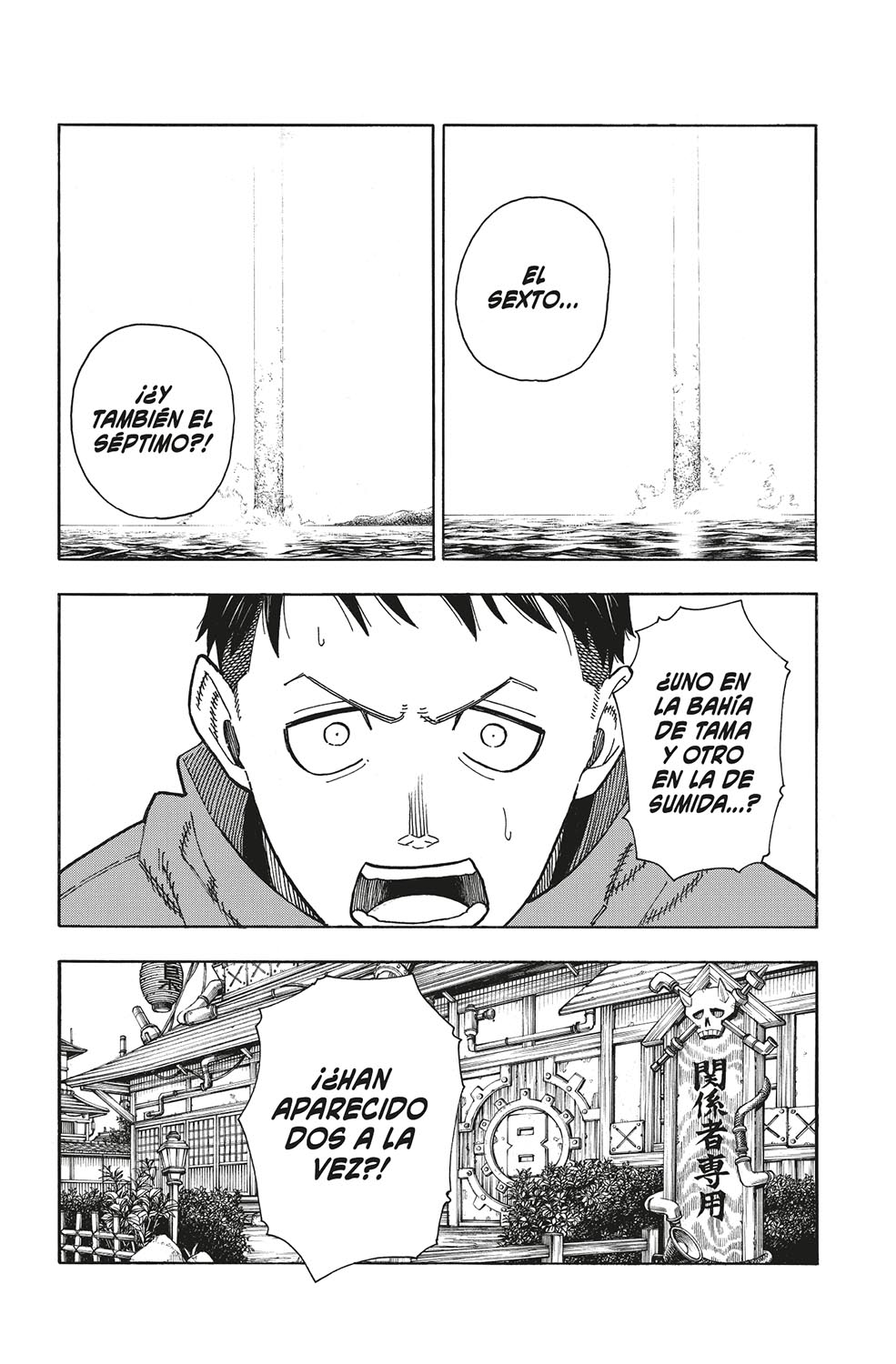 ¡El plan de destrucción orquestado por el Pastor está en su fase final! Las fuerzas del cuerpo de bomberos, Haijima y los Encapuchados Blancos se reúnen en la costa del Imperio de Tokio... ¿Cuál será la verdad sobre los pilares y la Gran Catástrofe? Ambos hermanos luchan en el frente de batalla… Tras conectar con el Adora Link con alguien inesperado, Shinra descubre un mundo impactante. Ahora que el otro mundo está tan cerca, ¡los desastres provocados por las llamas se fortalecen! ¿Adónde se dirigirán este mundo y el destino de la humanidad?