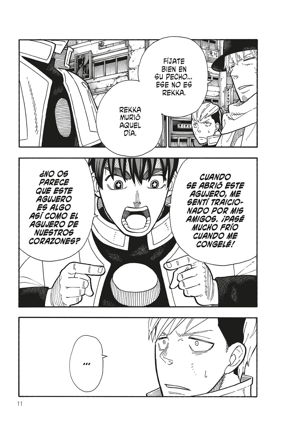 Los apóstoles de la destrucción y la Brigada Especial Antiincendios han empezado a enfrentarse a muerte... El doppelgänger de Rekka ha aparecido ante el primer escuadrón. El triste reencuentro con su amigo les desespera... ¿cómo responderá el dubitativo Karim? Por su parte, Arthur y Vulcan se enfrentan a un reto para encontrar a Yuu, que ha sido poseído por Giovanni. ¡Se aproxima la batalla final entre el dragón y el rey caballero!