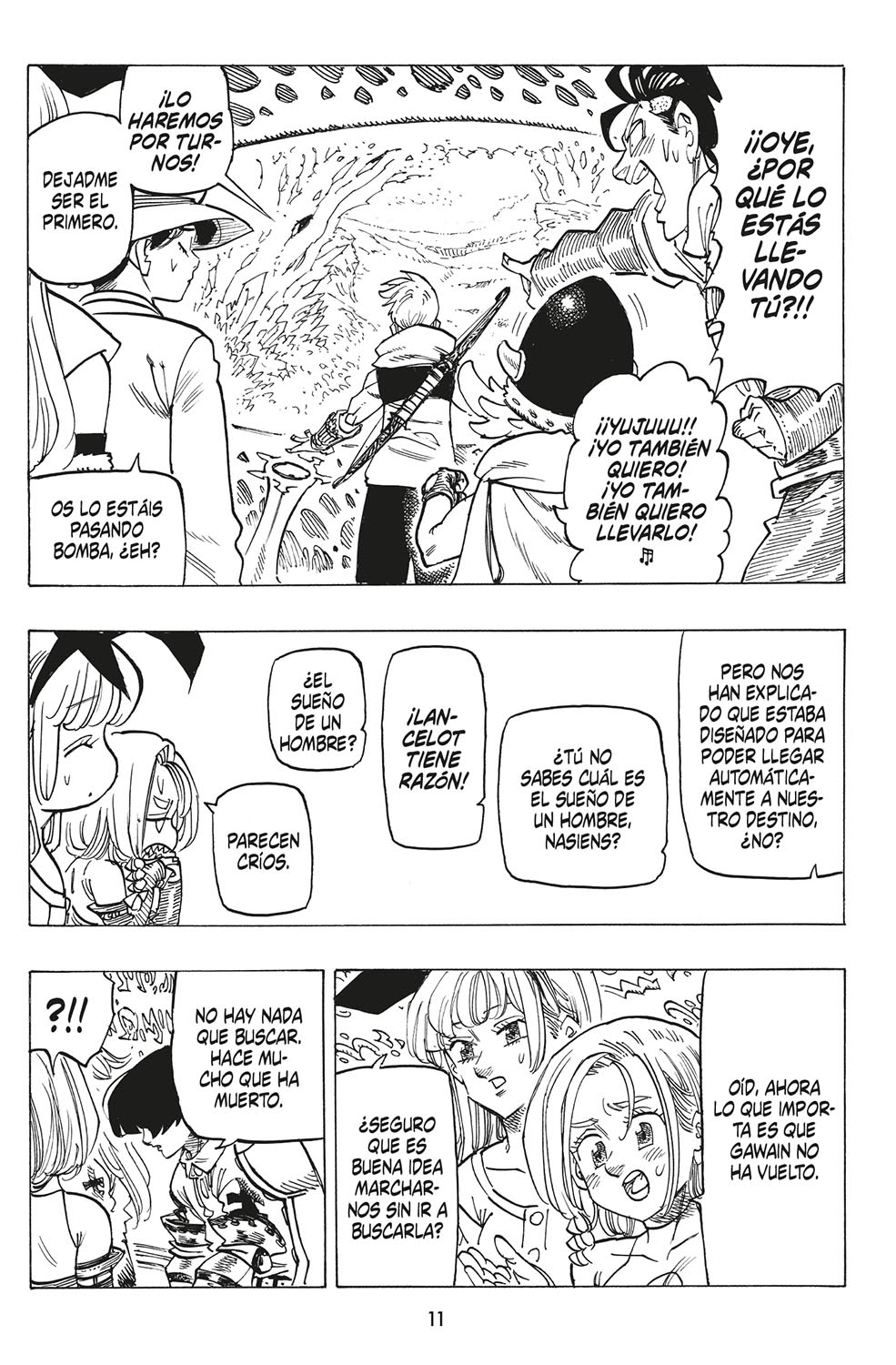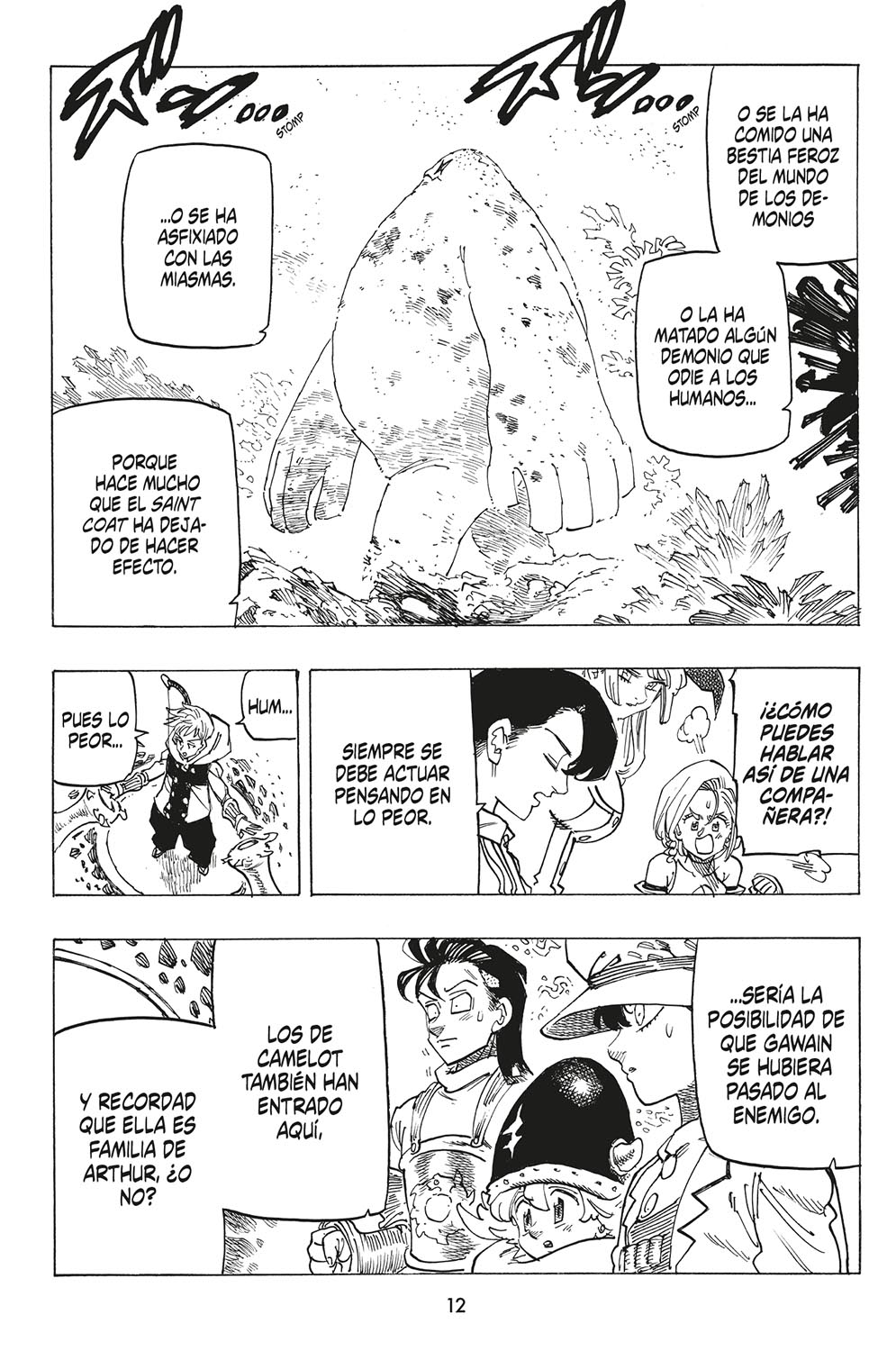 Pese a recibir la protección de Zeldris, una lluvia de fuego impide que los Four Knights of the Apocalypse sigan adelante. Entonces, Mortlach captura a Gawain e incluso se apodera de un fragmento del Ataúd de la Oscuridad Eterna. La situación es grave…