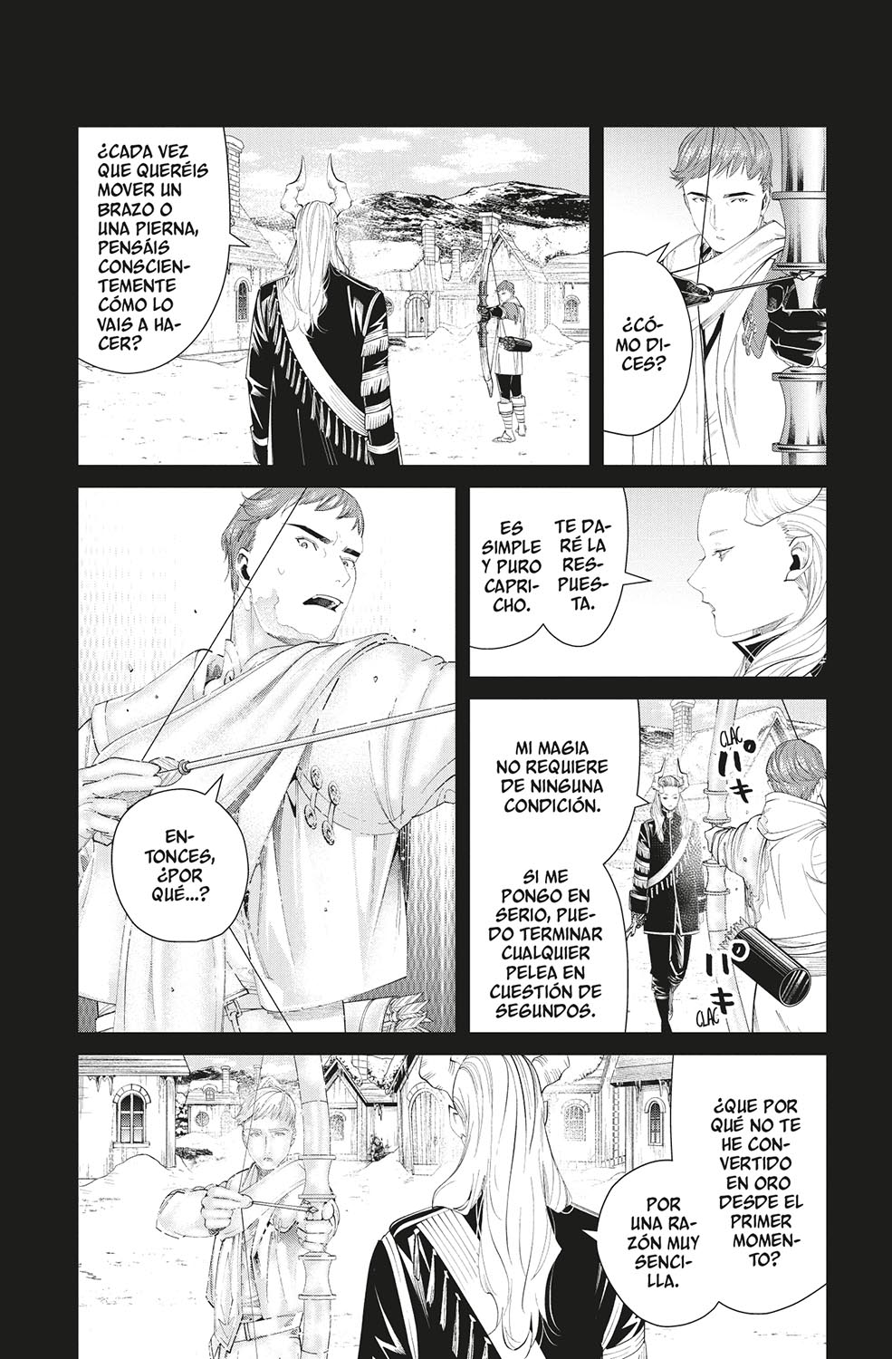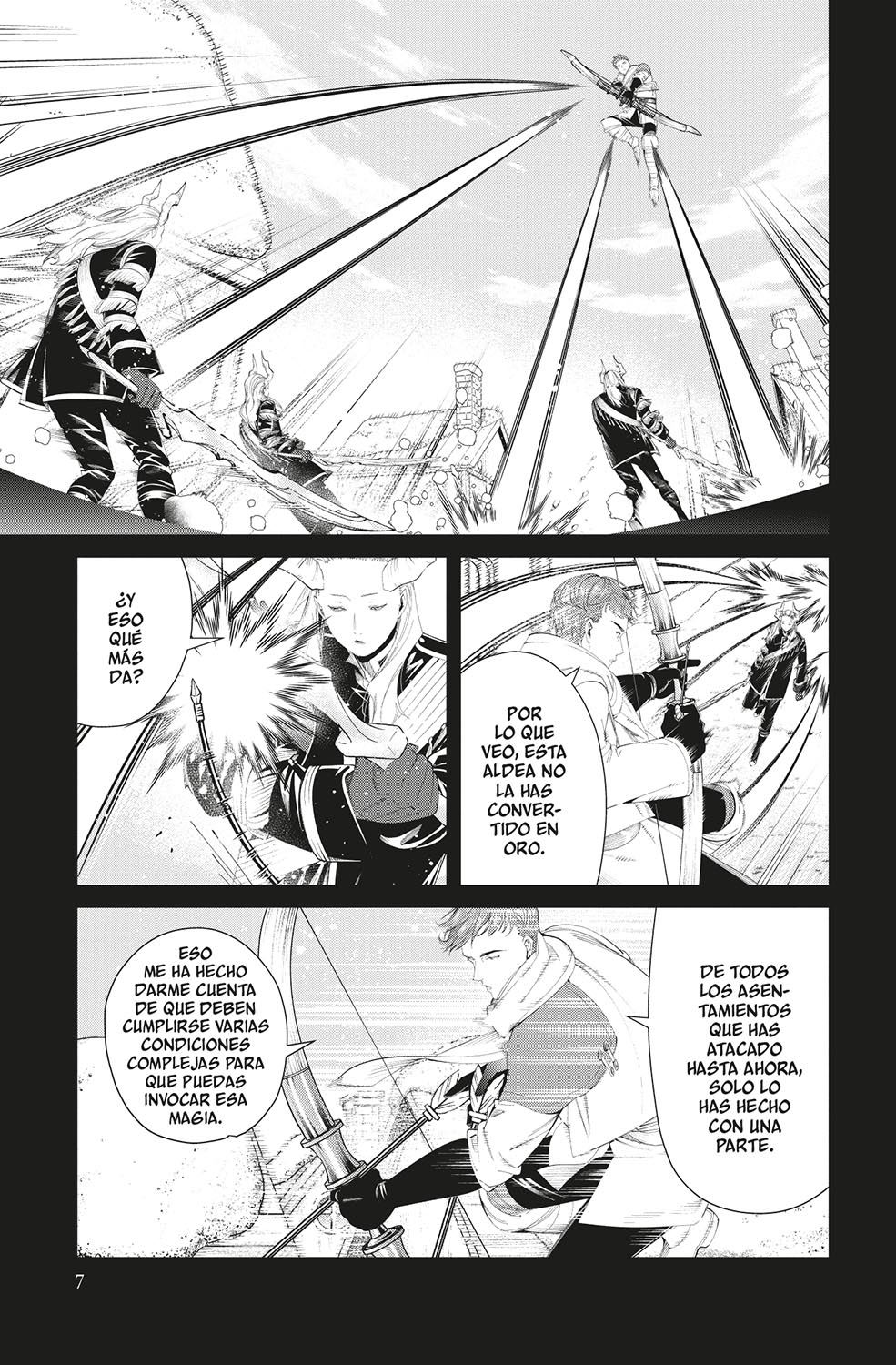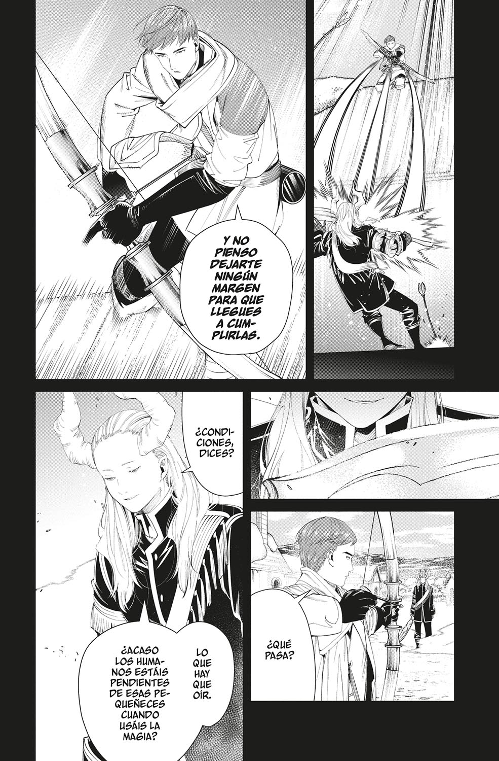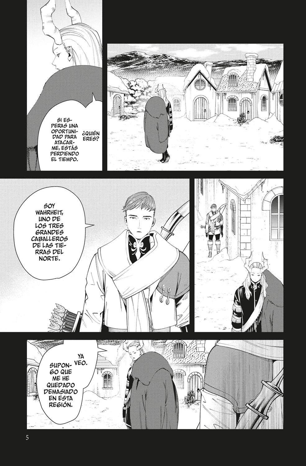 La maga Frieren, antiguo miembro del grupo de héroes, se encuentra en medio de su viaje hacia Aureole, la tierra donde descansan las almas. En el pasado, cuando Macht, de los siete sabios de la destrucción, buscaba “conocer a las personas”, llegó a establecer una singular relación entre humanos y demonios. La historia se funde en un oro sin color en esta fantasía que refleja la “malicia” de aquellos que una vez fueron héroes.