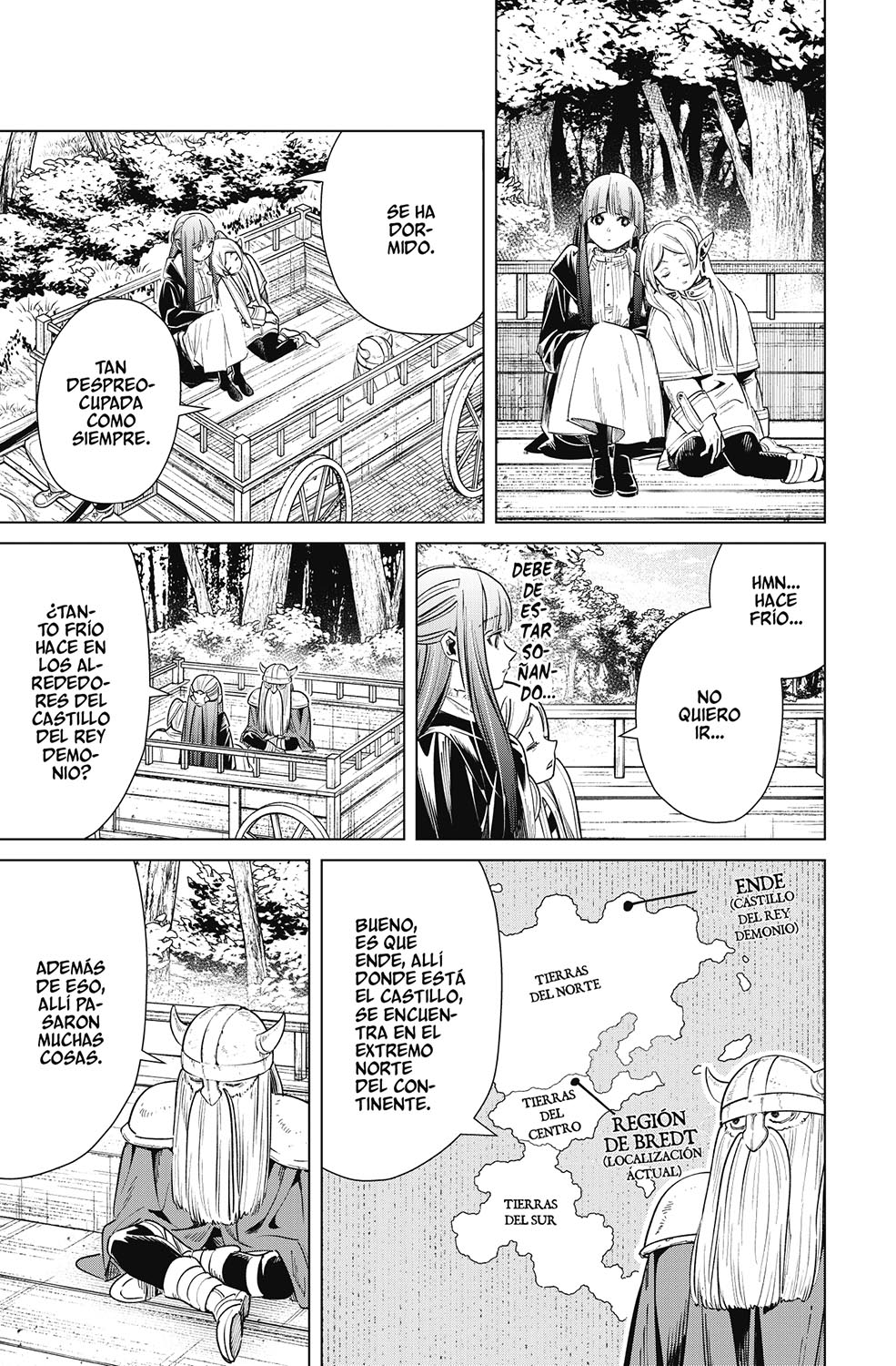La elfa Frieren y su ayudante Fern se dirigen al norte en busca de la tierra en la que se dice que descansan las almas de los héroes. Pero en esta tierra se encuentra también el Castillo del Rey Demonio. Cuando lleguen se darán cuenta de que todo ha cambiado y que, aunque el Rey Demonio se fue ya hace mucho tiempo, sus secuaces aún quieren resolver algunos asuntos del pasado con nuestra elfa.