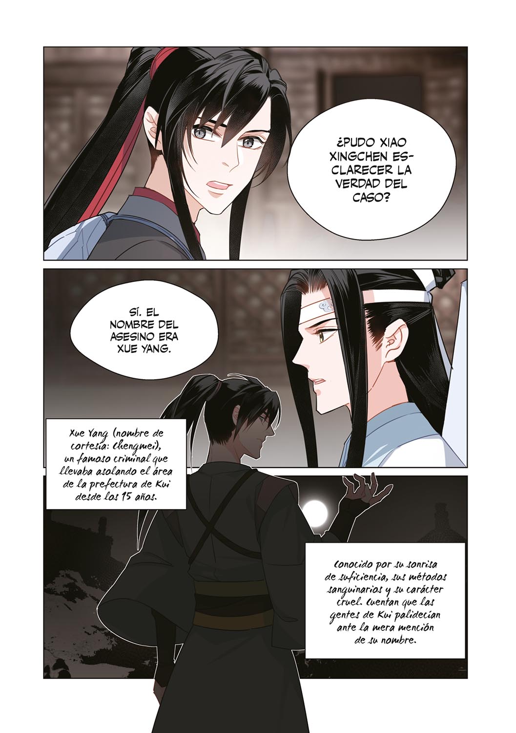 Las víctimas de la matanza que en su día conmocionó al mundo de la cultivación llevan diez años guardando silencio en un cementerio. Lan Wangji le cuenta a Wei Wuxian la historia de los famosos Xiao Xingchen, compañero de la luna y la brisa, y Song Lan, desafiador de la nieve y la escarcha. Tanto el uno como el otro llevan años desaparecidos. Lan Wangji menciona también a un temible asesino llamado Xue Yang, del que no se sabe si realmente fue ajusticiado o consiguió escapar.