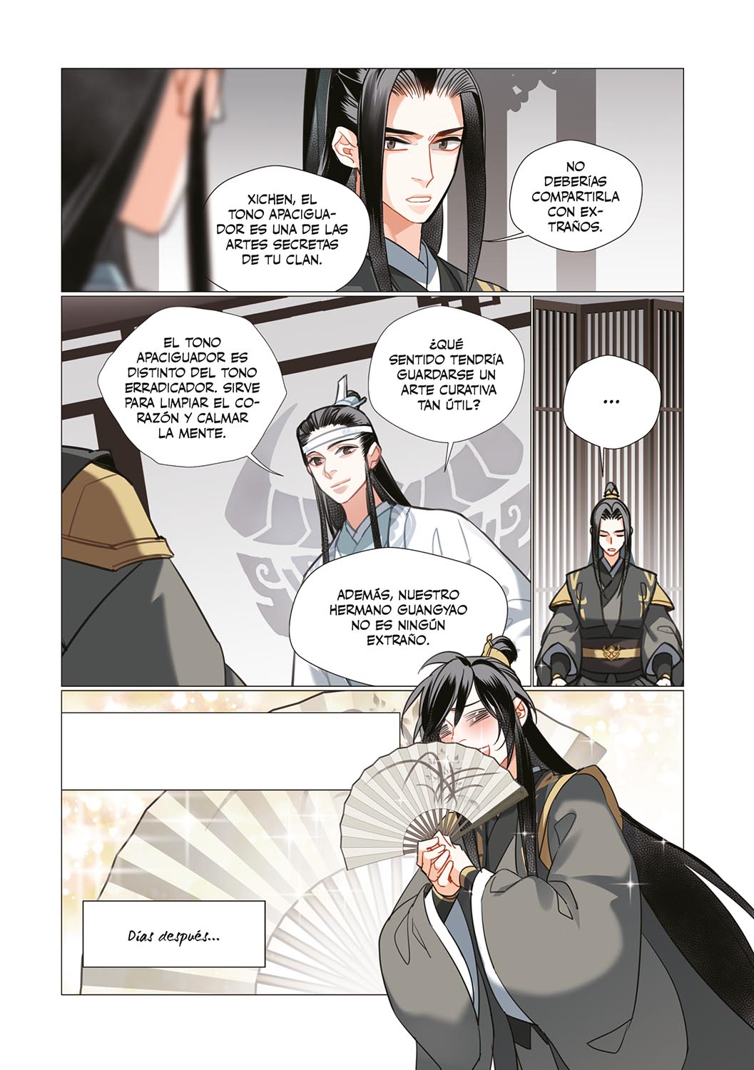 Herido y a punto de desfallecer, Wei Wuxian recuerda por fin que en el pasado él también había cargado con Lan Wangji para huir de un peligro… Sus recuerdos se remontan a los años en que el clan Wen de Qishan ostentaba un poder casi absoluto, cuando Lan Wangji y él pasaron varios días atrapados en la gruta del Xuanwu asesino del monte Muxi. ¿Cómo se ayudaron a sobrevivir y cómo salieron de allí al final?