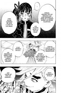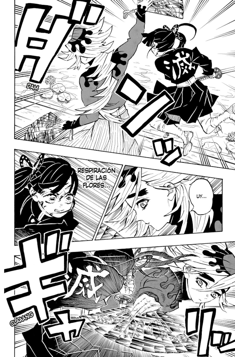 Al encontrarse cara a cara con el demonio que asesinó a sus seres queridos, Kanao e Inosuke no pueden evitar que la rabia estremezca sus cuerpos, pero eso no les impide luchar ferozmente contra las devastadoras kekkijutsu con las que el demonio Dôma los bombardea. ¡¿Conseguirán girar las tornas y consumar su venganza a pesar de su aparente inferioridad...?!