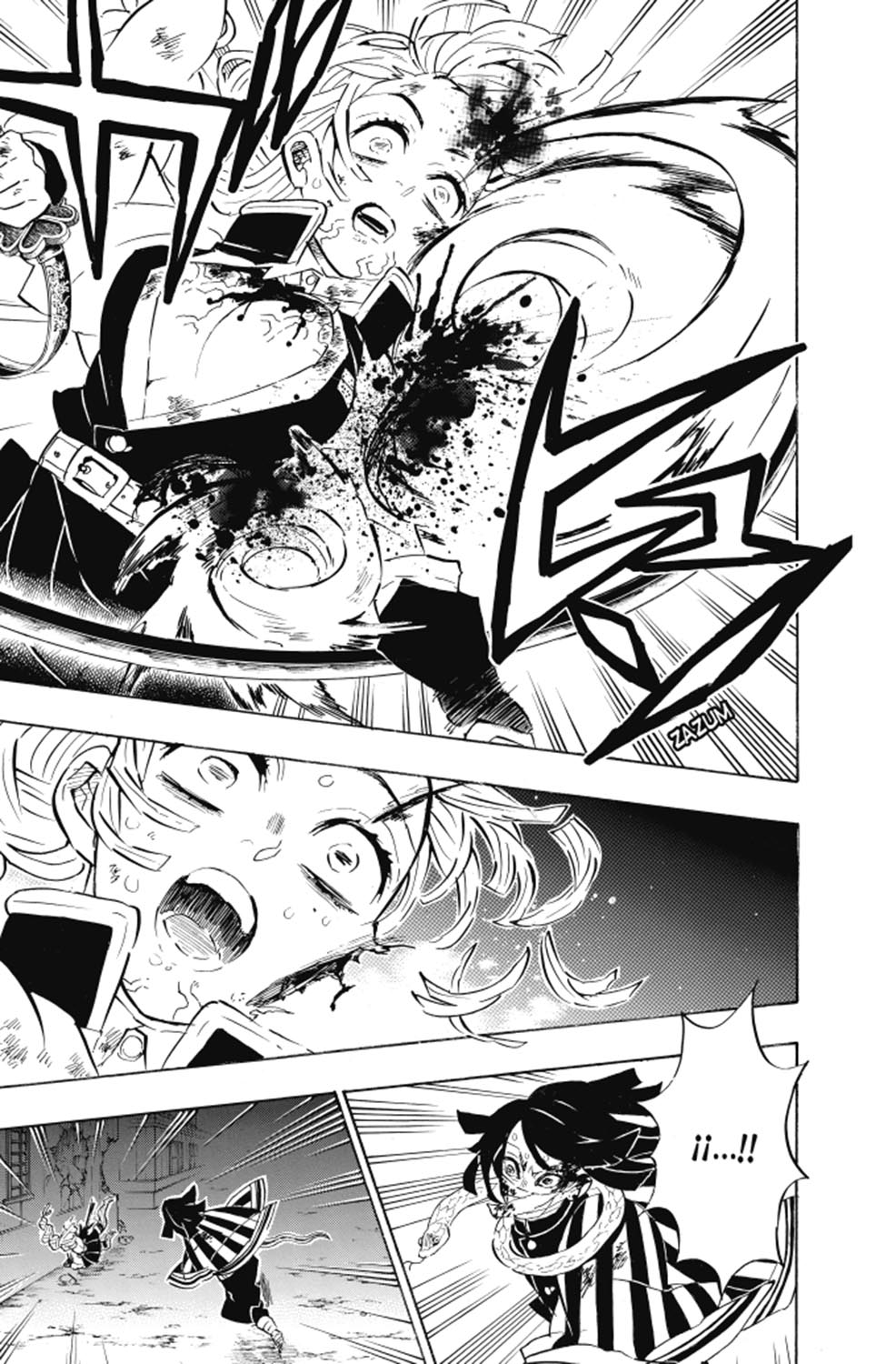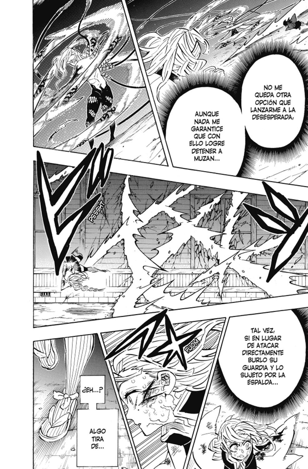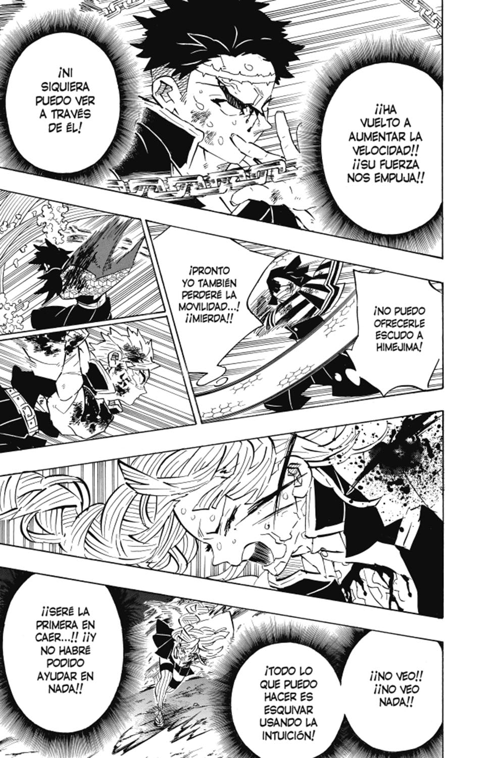 Todavía falta más de una hora para el amanecer y Muzan se muestra cada vez más feroz en la lucha. Los pilares que quedan en pie se lanzan a por él, pero ¿podrán sus espadas alcanzarlo? Mientras, Tanjirô sigue abatido, víctima de uno de los ataques de Muzan... ¡¡Todo el mundo se esfuerza al máximo en una batalla que está llegando al límite!!