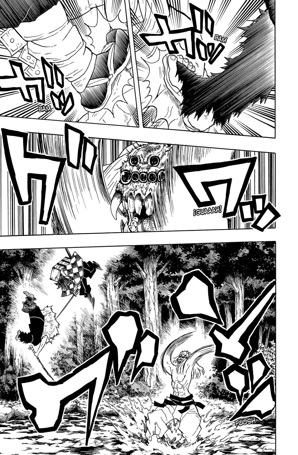 Mientras Zenitsu lucha contra los efectos de un veneno que lo está convirtiendo en una criatura arácnida, Inosuke y Tanjirô tienen que pelear contra el padre de la familia, quien no piensa ponerles las cosas nada fáciles... ¿Encontrarán una salida a tan desesperada situación...?