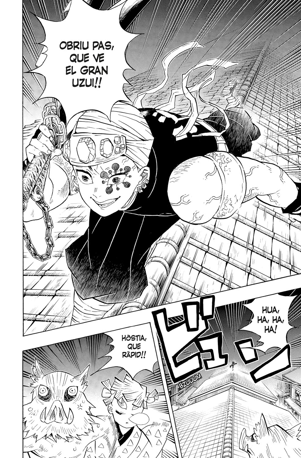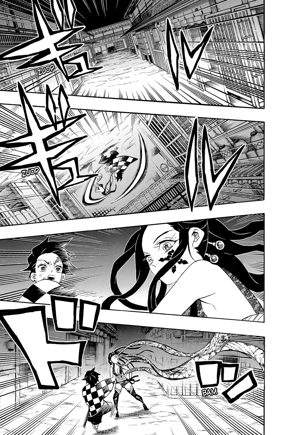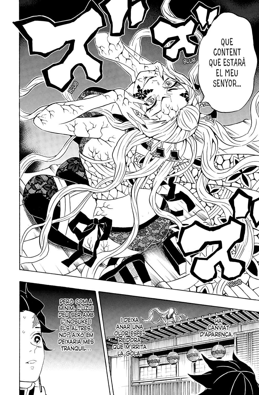 La Daki, l’oiran demoníaca que ha estat exercint el seu domini sobre el barri del plaer, es fusiona amb la seva faixa i ataca en Tanjirô amb una força descomunal. En Tanjirô contraataca amb la dansa sagrada del foc, però acaba al límit de les seves forces. La Nezuko i l’Uzui miraran d’agafar-li el relleu, però la batalla contra la Lluna superior acabarà tenint un gir inesperat...