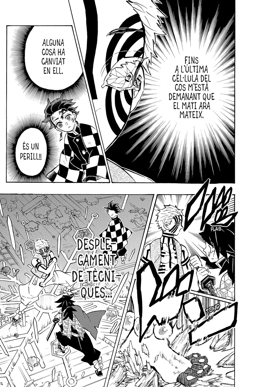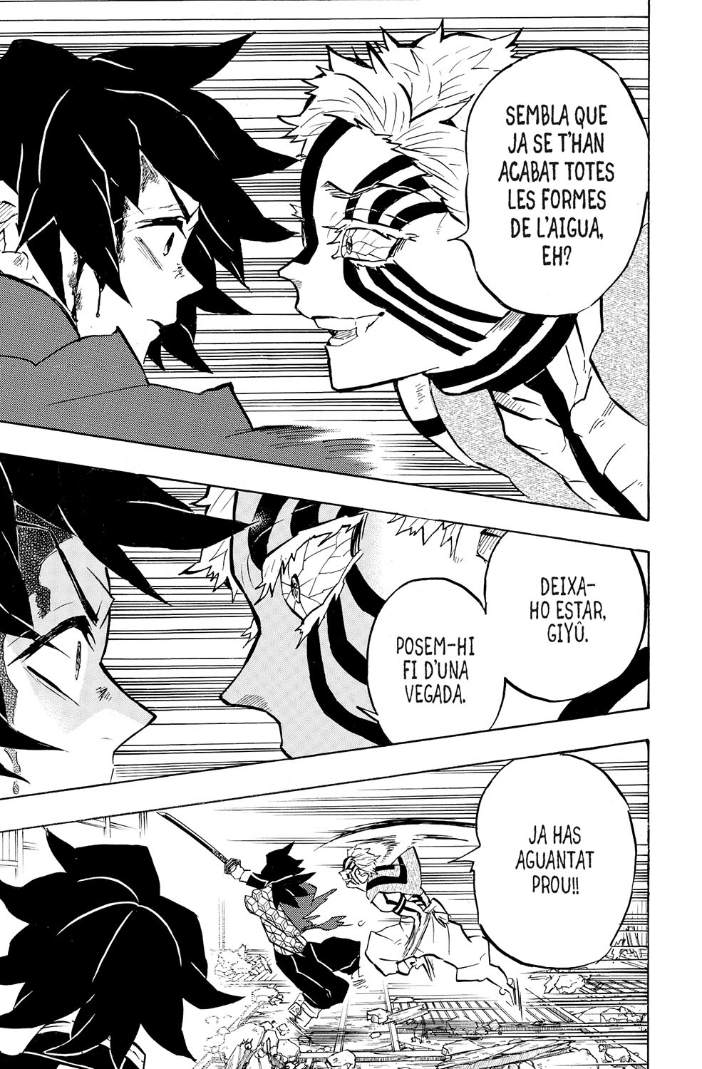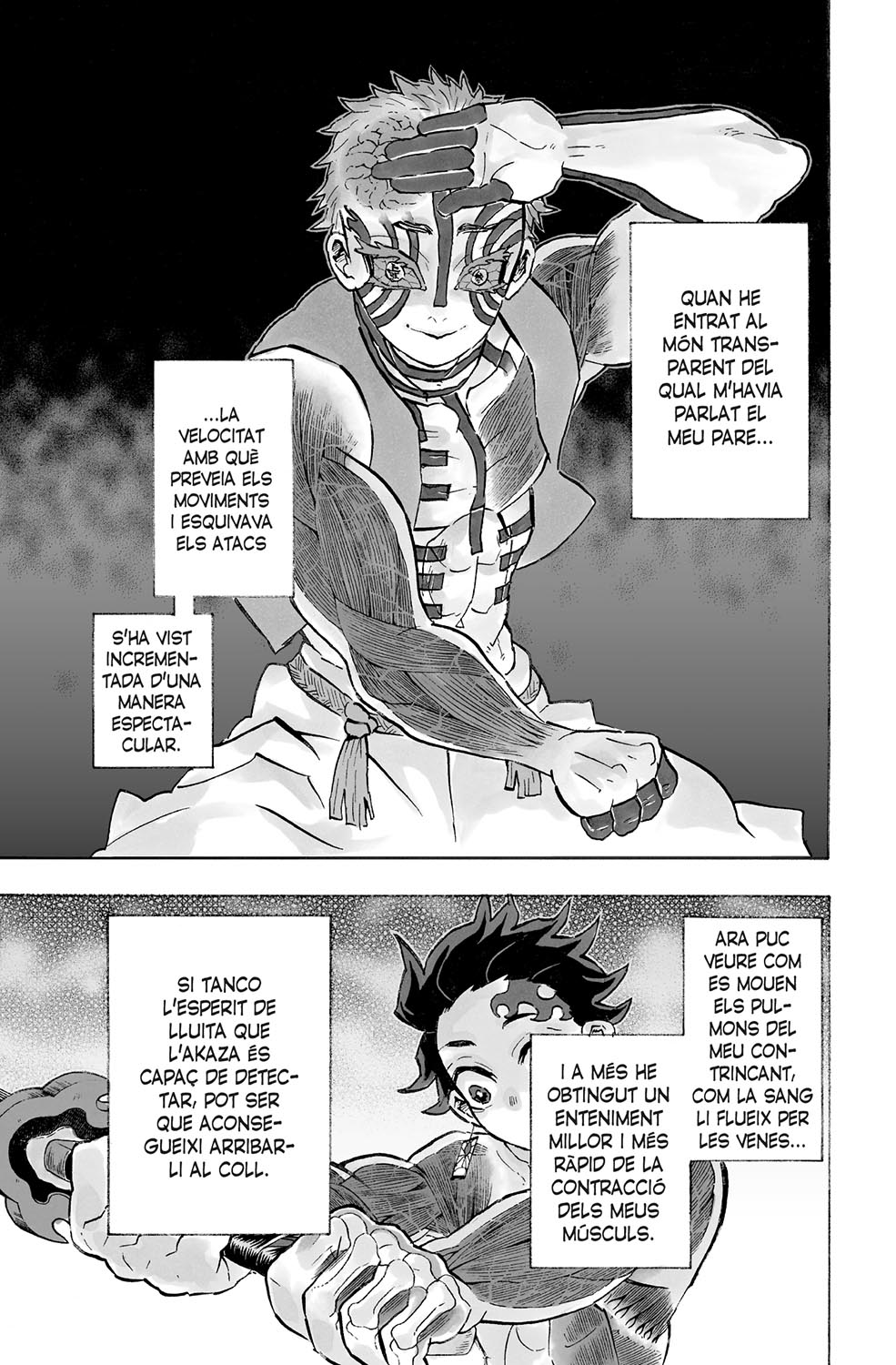 En Tanjirô i en Tomioka s’enfronten a l’Akaza, la tercera Lluna superior, tot i que el seu poder aclaparador els obliga a lluitar a la defensiva. En mig de la ferotge batalla, però, en Tanjirô aconsegueix per fi veure el “món transparent” del qual li havia parlat el seu pare... Serà capaç aquest cop de tocar l’Akaza amb la seva katana...?!