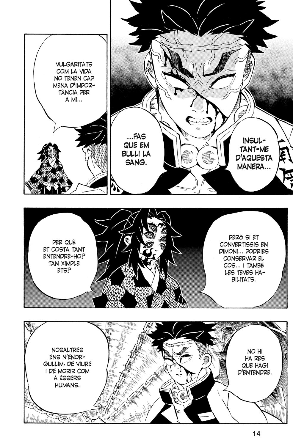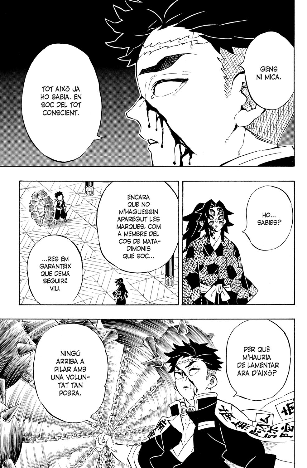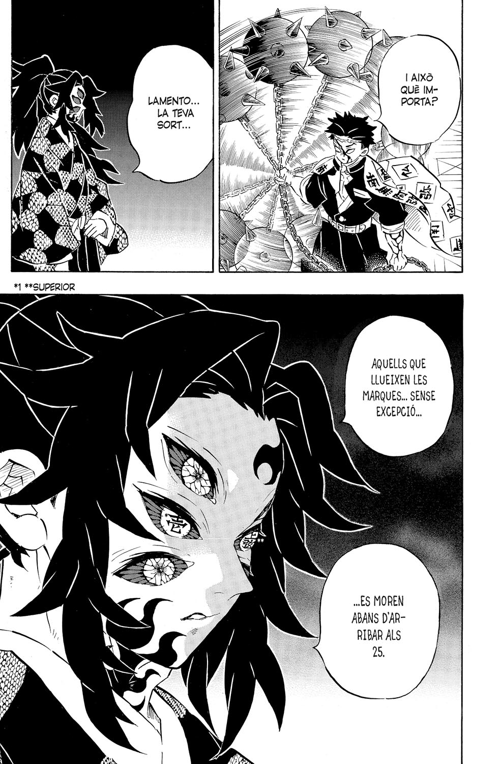 Els pilars Himejima i Shinazugawa s’enfronten a la primera Lluna superior. Durant el transcurs de la batalla, a tots dos els apareixen les marques a la pell, però ni això ni la seva coordinació atacant són suficients per fer ombra a l’aclaparador poder de l’enemic. Tanmateix, quan tot ja sembla perdut, en Genya es recupera absorbint una part de la primera Lluna... Quin serà el desenllaç d’aquesta cruenta batalla?!