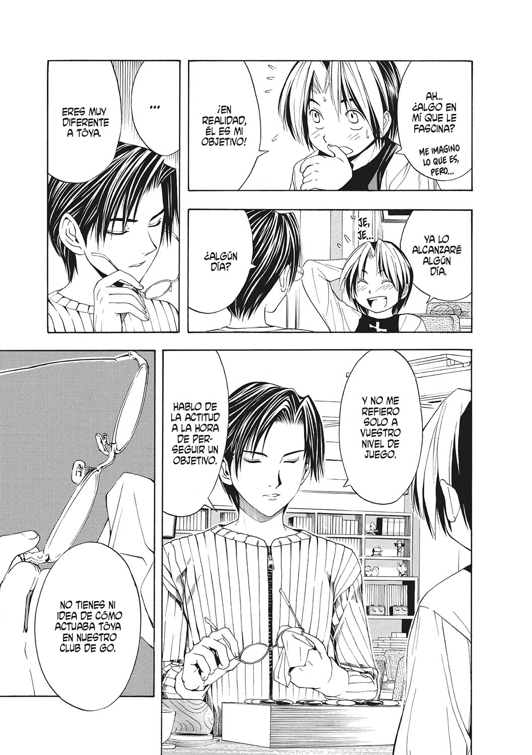 Hikaru decide jugar una partida contra Kishimoto del Kaiô y éste le anuncia que Akira pronto será oficialmente un profesional. Aunque la noticia le impacta, el muchacho tiene claro que algún día podrá alcanzarlo, pero Kishimoto le recrimina su falta de respeto hacia su rival: “Si esperas demasiado, Akira será completamente inalcanzable para ti”. Es por ello que nuestro protagonista decide presentarse a los exámenes para insei y estudiar en la escuela de la Asociación Nacional. Pero ¿podrá lograrlo sin la supervisión de Sai…?