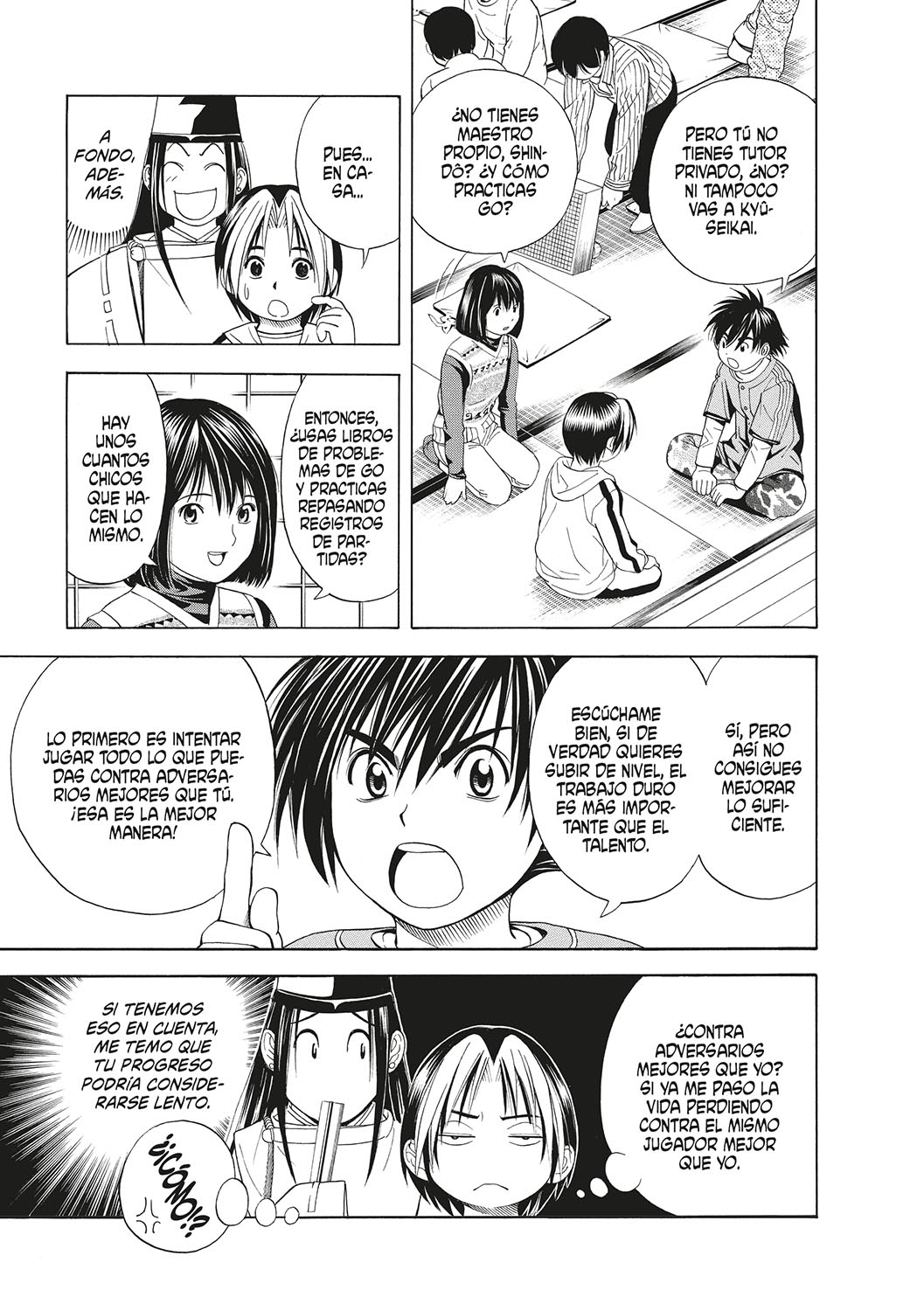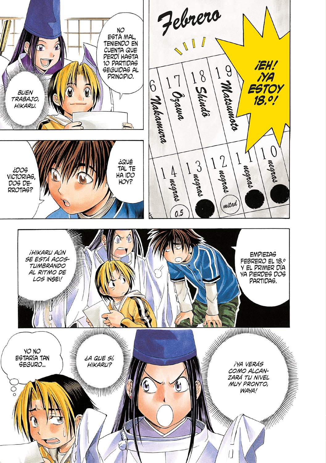 Hikaru, que empezó a jugar al go casi por obligación, acaba enganchado al juego y decide poner toda la carne en el asador para convertirse en profesional o, al menos, llegar a un nivel que le permita enfrentarse de nuevo a Akira pero sin la ayuda de Sai, usando solo sus propias capacidades. No obstante, aunque cada día practica sin parar, le cuesta ver resultados, y es que vive demasiado bajo la sombra de la maestría de Sai y esto empieza a pasarle factura en su entrenamiento como insei… ¿conseguirá Hikaru encontrar su propio camino en medio del tablero de go?