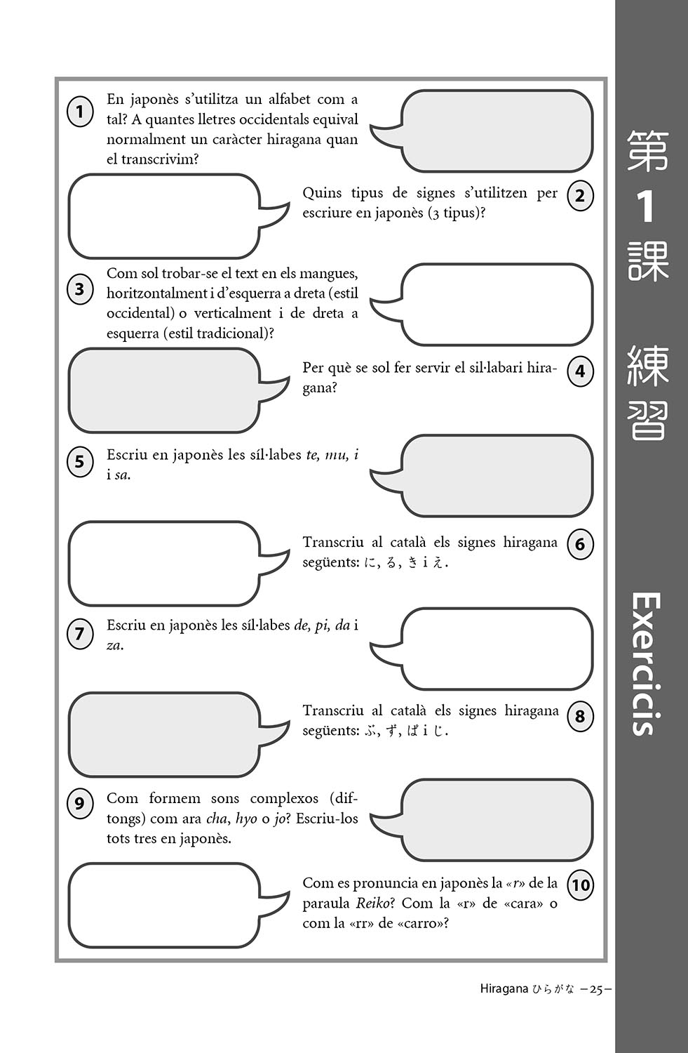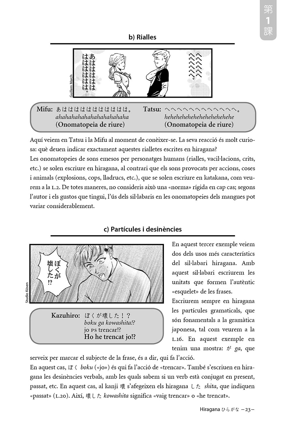 Aquest volum, revisat i millorat, recopila el material publicat prèviament al primer volum de Japonès en vinyetes i el Quadern d’exercicis 1.