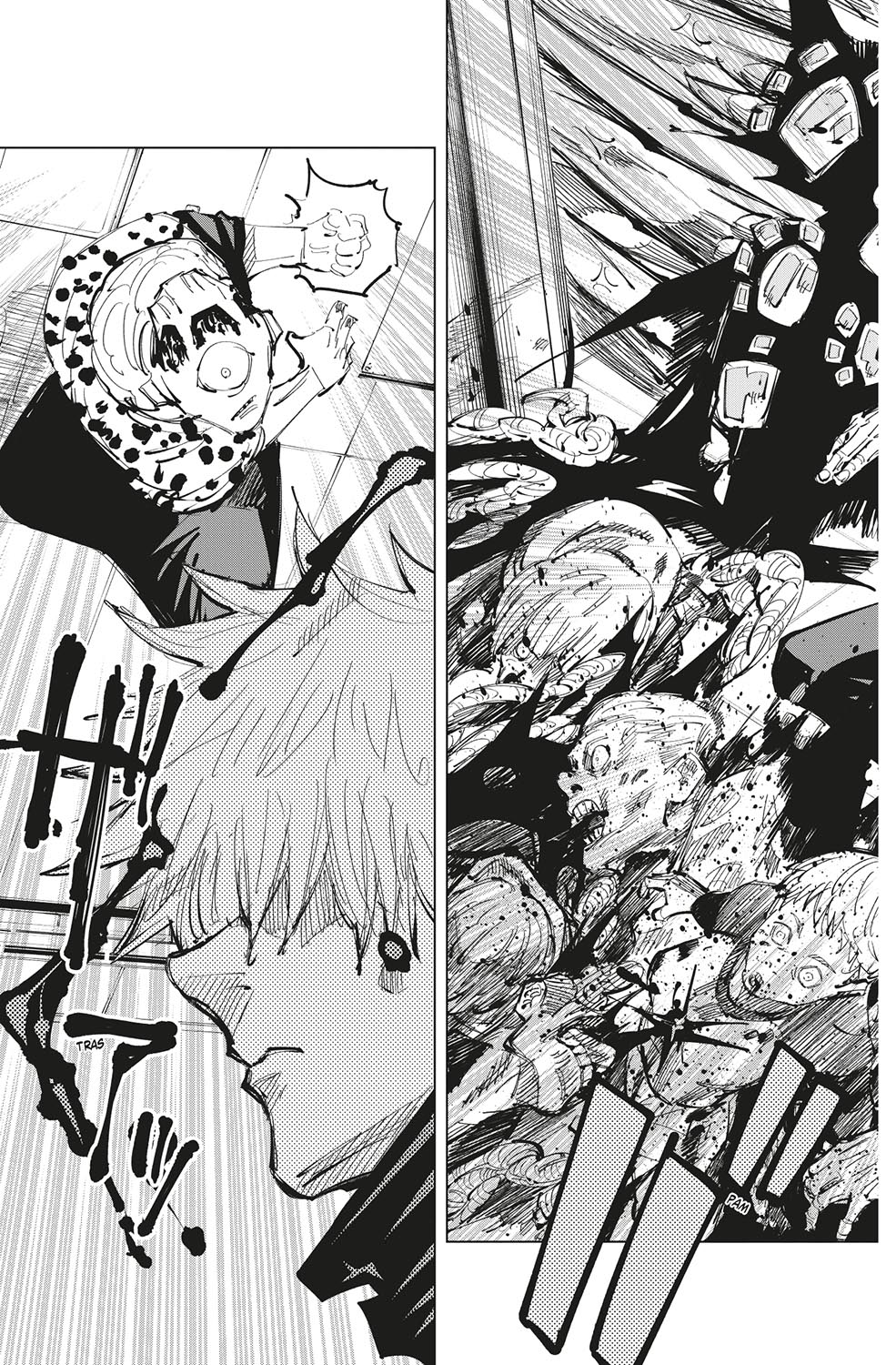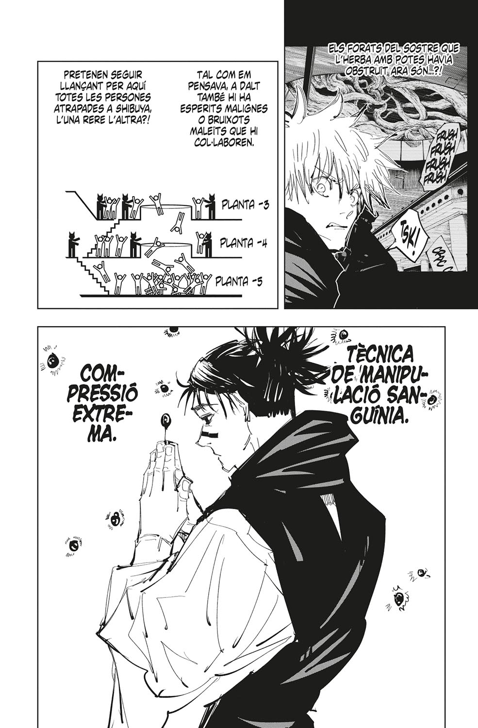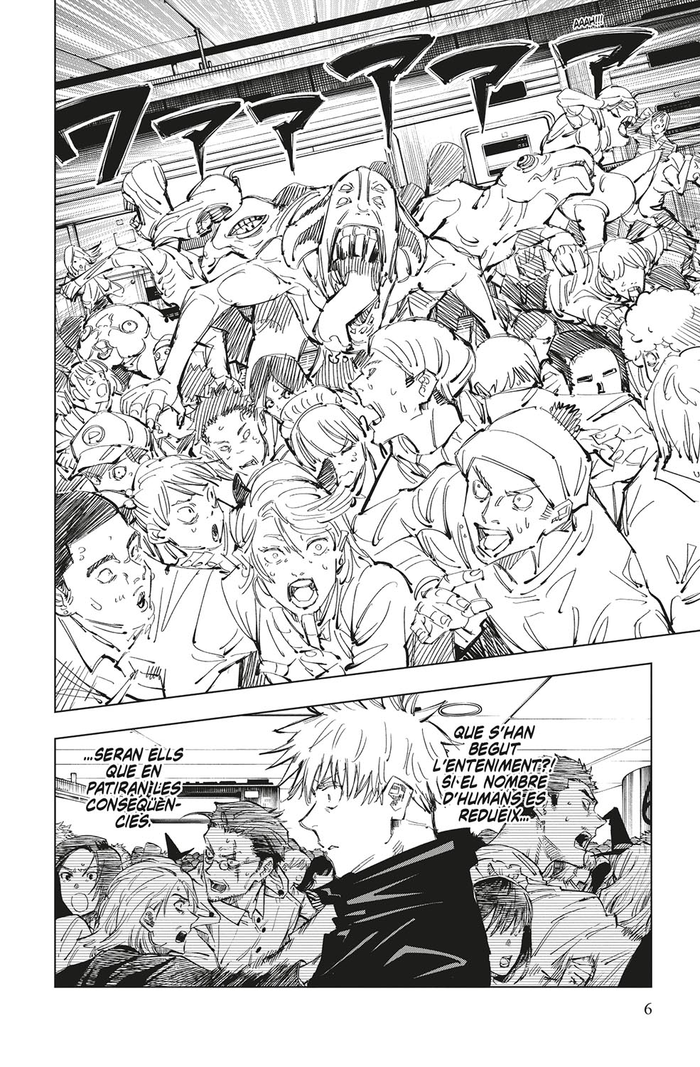 L’andana de metro de l’estació de Shibuya està abarrotada de persones normals i també d’humans modificats... Malgrat veure’s immers en aquesta situació terrible i sense escapatòria, en Gojô domina la lluita en tot moment i en fa passar de tots colors als esperits malignes. Però l’enemic encara té un as a la màniga: un atac pensat especialment per segellar en Gojô! Mentrestant, l’Itadori s’afanya a arribar a l’estació de Shibuya i, de camí, topa amb un aliat inesperat!