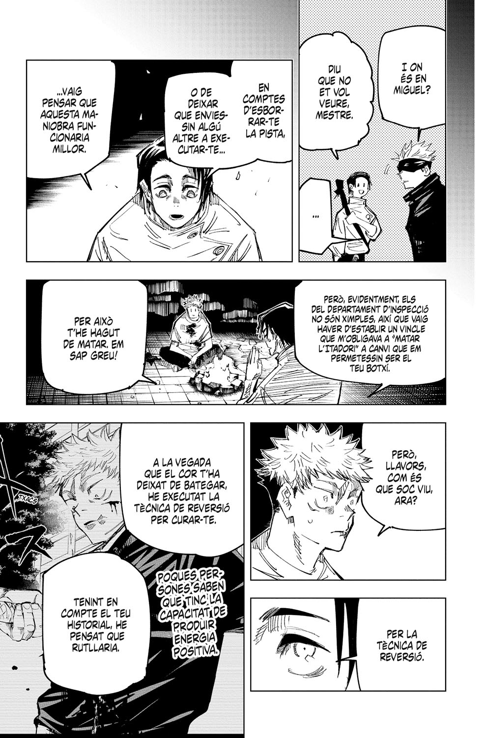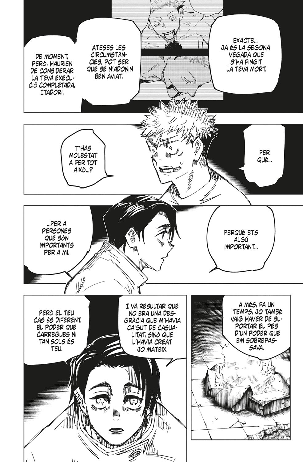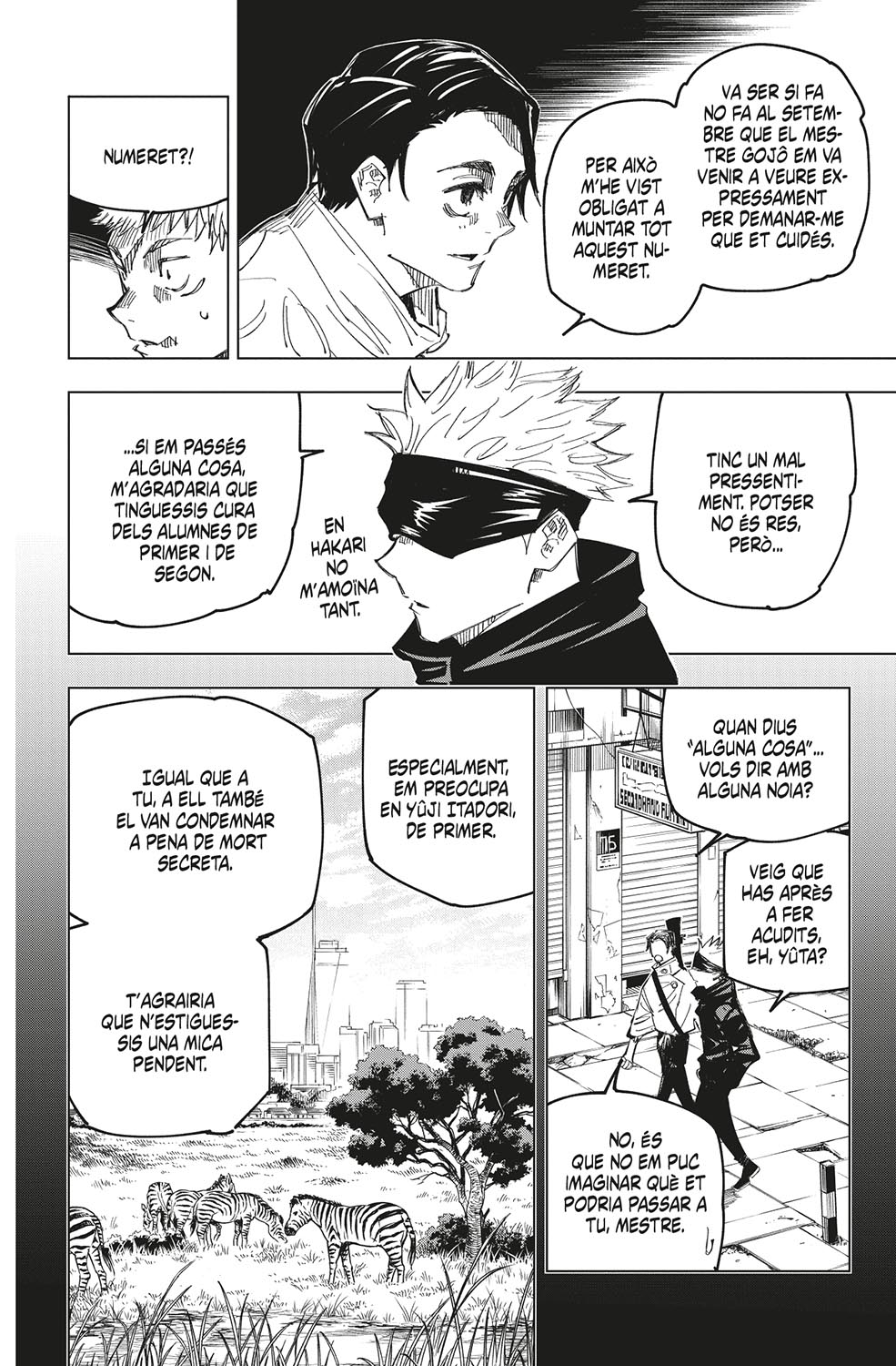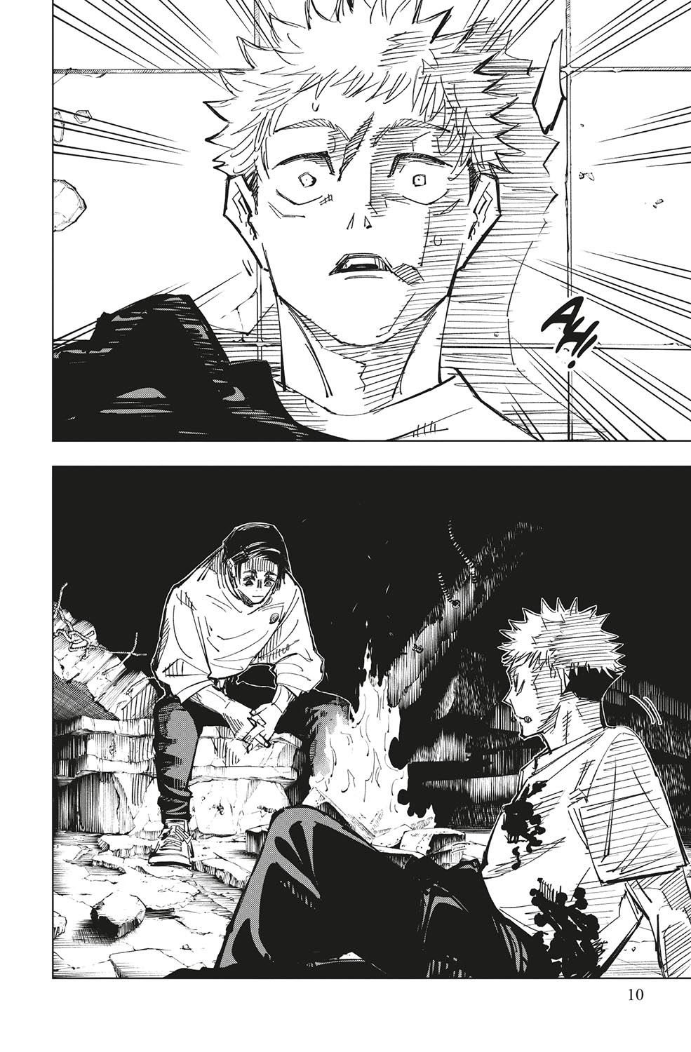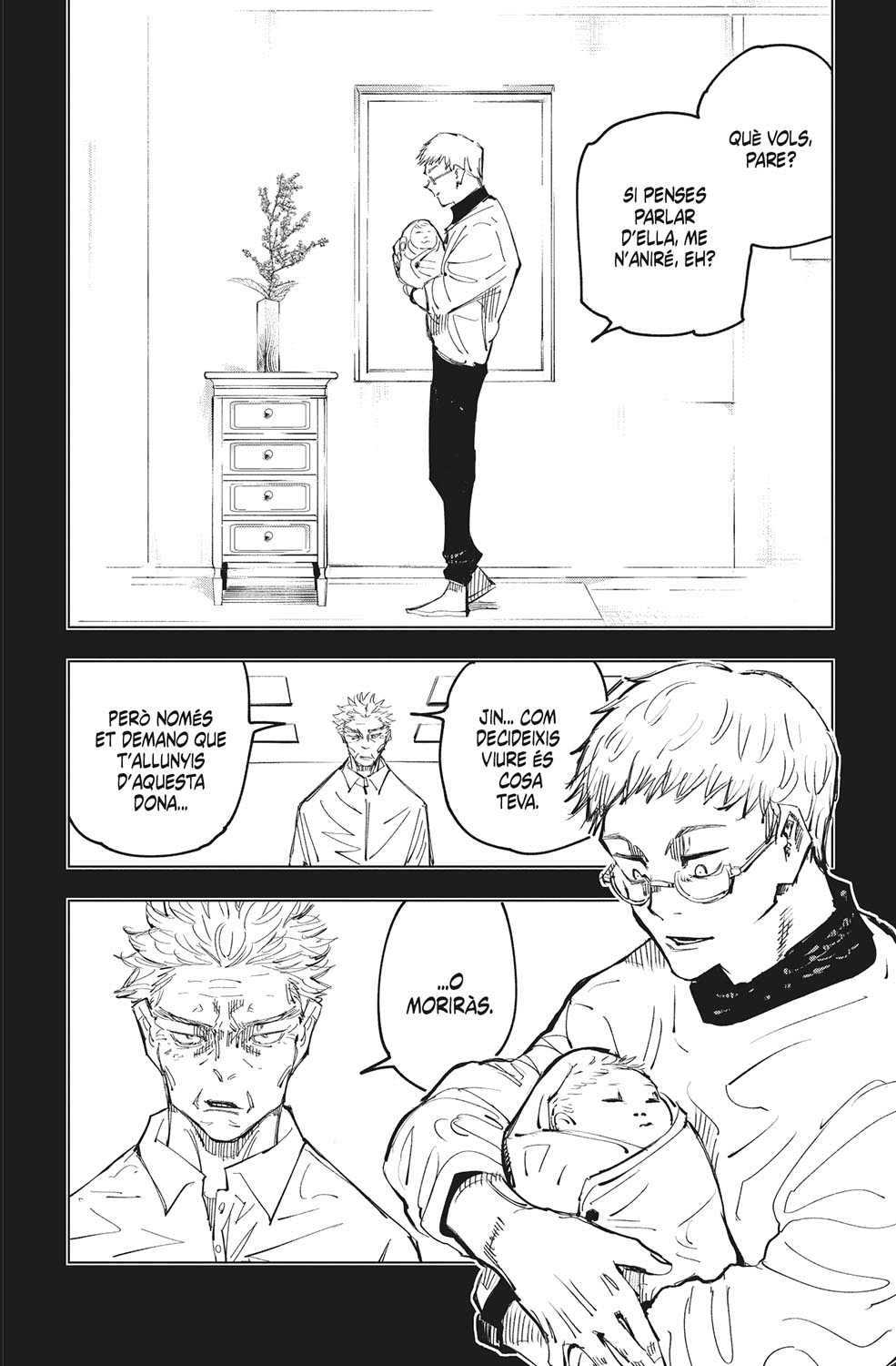L’Itadori es troba entre la vida i la mort després de perdre el combat contra l’Okkotsu, el seu botxí, i recorda una escena del passat amb la seva família... on apareix la imatge del cos anterior d’en Noritoshi Kamo. Just quan es posa en marxa un pla per suprimir el “Joc de l’aniquilació”, en què els bruixots s’hauran de matar els uns als altres, la Maki es dirigeix cap a la residència del clan Zen’in!